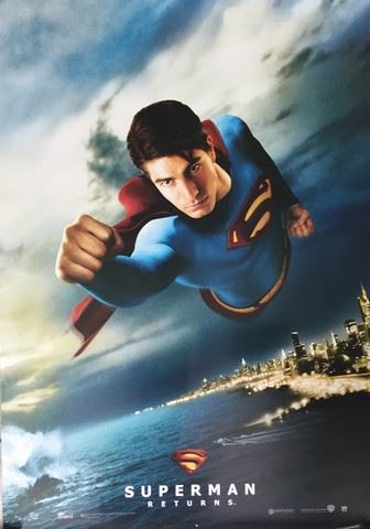 Superman Returns (2006) rolled poster featuring Superman/Clark Kent (Brandon Routh) flying (27"x41"). Slight rippled edges. Good Condition.