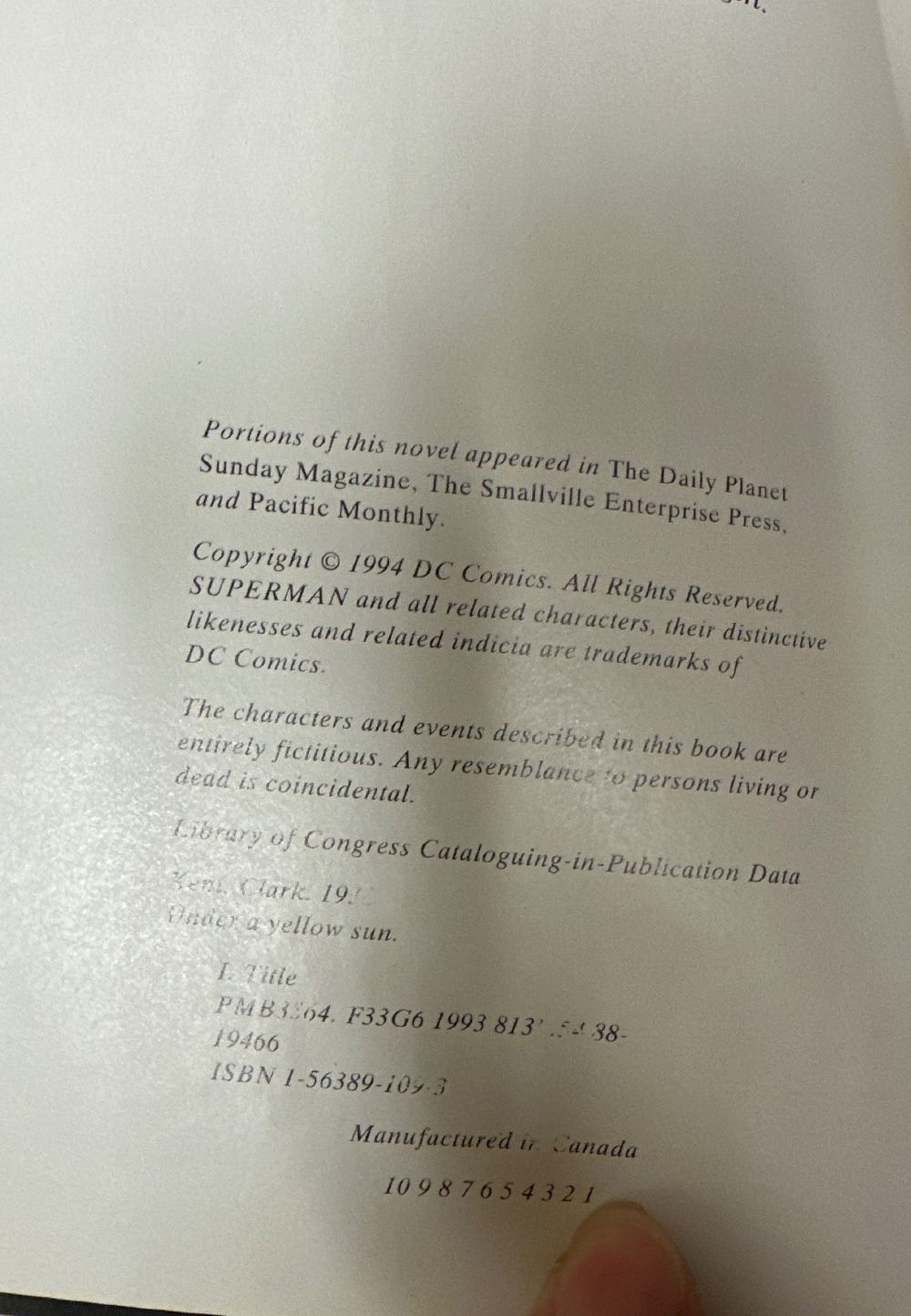 Superman: Under a Yellow Sun DC Comics 1994 Novel by Clark Kent