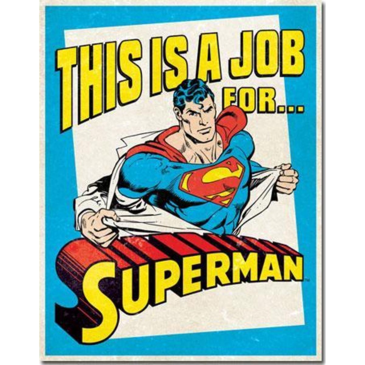 "This Is A Job For Superman" vintage-style metal pub bar sign. 12 1/2" X 16" with pre-drilled holes for mounting.