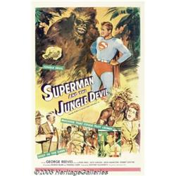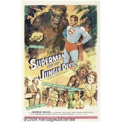 <B>Superman and the Jungle Devil (20th Century Fox, 1954)</B></I> One Sheet (27" X 41"). Often thought of as the international one sheets to the compilation of episodes of the TV series, there were several feature films made from the series with George Reeves. This was a compilation of episodes #39 ("Machine That Could Plot Crimes"), #40 ("Jungle Devil"), and #31 ("Shot in the Dark"). This poster was linen backed with just minor fold line touchup. Very Fine on Linen.