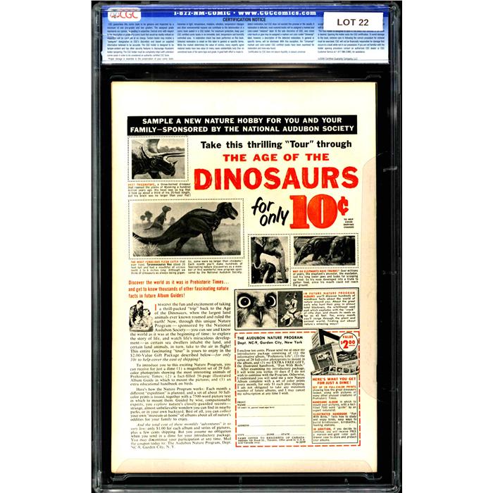 The Auctioneer has reserved the right to reject any and all bids, and to bid at the auction. Auctioneers Auctions are not on approval. Auctioneer does not allow certified material to be returned because of possible differences of opinion with respect to the grade offered by any third party organization, dealer, or service. Absolutely no guarantee of grade is offered for un-certified property sold and subsequently submitted to a third-party grading service. There will be no exceptions to this policy. Under extremely limited circumstances, (e.g. gross cataloging error) a purchaser, who did not bid from the floor, may request Auctioneer to evaluate voiding a sale; such request must be made in writing detailing the alleged gross error, and submission of the lot to the Auctioneer must be pre-approved by the Auctioneer. Bidder must notify Auctioneer in writing of such request within three (3) days of the non-floor bidder receipt of the lot. Any lot that is to be evaluated must be in our offices within 30 days after Auction. Grading does not qualify for this evaluation process nor do such complaints constitute a basis to challenge the authenticity of a lot. AFTER THAT 30-DAY PERIOD, NO LOTS MAY BE RETURNED FOR REASONS OTHER THAN AUTHENTICITY. Lots returned must be housed intact in the original holder. No lots purchased by floor Bidders may be returned (including those Bidders acting as agents for others). Late remittance for purchases may be considered just cause to revoke all return privileges. B: Auctions conducted solely on the Internet have a THREE (3) DAY RETURN POLICY: Lots paid for within seven days of the Auction closing are sold with a three (3) day return privilege. You may return lots under the following conditions: Within three days of receipt of the lot, you must first notify Auctioneer by contacting Client Service by phone (314-680-8599) or e-mail (moundcityauctions@gmail.com), and immediately mail the lot(s) fully insured to the attention of Returns, Mound City Auctions 1081 Teson Rd. Hazelwood, MO. 63042. Lots must be housed intact in their original holder and in their original condition. You are responsible for the insured, safe delivery of any lots. Auctioneer will not be responsible for lots returned in non-registered mail or lots returned without prior authorization per section B. A non-negotiable return fee of 5% of the purchase price ($10 per lot minimum) will be deducted from the refund for each returned lot or billed directly. Postage and handling fees are not refunded. After the three-day period (from receipt), no items may be returned for any reason. Late remittance for purchases revokes all Return-Restock privileges. C: Bidders who have inspected the lots prior to the auction will not be granted any return privileges. D: Comic books sold referencing a third-party grading service are sold “as is” without any express or implied warranty. Certain warranties may be available from the grading services and the Bidder is referred to them for further details: Certified Guaranty Company, LLC. (CGC), P.O. Box 4738, Sarasota, FL 34230. E: Bidders who intend to challenge authenticity or provenance of a lot must notify Auctioneer in writing within thirty (30) days of the Auctions conclusion. In the event Auctioneer cannot deliver the lot or subsequently it is established that the lot lacks title, provenance, authenticity, or other transfer or condition issue is claimed, Auctioneer's liability shall be limited to rescission of sale and refund of purchase price; in no case shall Auctioneer's maximum liability exceed the high bid on that lot, which bid shall be deemed for all purposes the value of the lot. After one year has elapsed, Auctioneer's maximum liability shall be limited to any commissions and fees Auctioneer earned on that lot. F: All comics are guaranteed genuine, but are not guaranteed as to grade, since grading is a matter of opinion, an art and not a science, and therefore the opinion rendered by the Auctioneer or any third party grading service may not agree with the opinion of others (including trained experts), and the same expert may not grade the same item with the same grade at two different times. G: Since we cannot examine encapsulated comics, they are sold “as is”without our grading opinion, and may not be returned for any reason. Auctioneer shall not be liable for any patent or latent defect or controversy pertaining to or arising from any encapsulated collectible. In any such instance, purchaser's remedy, if any, shall be solely against the service certifying the collectible. H: Due to changing grading standards over time, differing interpretations, and to possible mishandling of items by subsequent owners, Auctioneer reserves the right to grade items differently than shown on certificates from any grading service that accompany the items. Auctioneer also reserves the right to grade items differently than the grades shown in the prior catalog should such items be reconsigned to any future auction. I: Although consensus grading is employed by most grading services, it should be noted as aforesaid that grading is not an exact science. In fact, it is entirely possible that if a lot is broken out of a plastic holder and resubmitted to another grading service or even to the same service, the lot could come back with a different grade assigned. J: Certification does not guarantee protection against the normal risks associated with potentially volatile markets. The degree of liquidity for certified collectibles will vary according to general market conditions and the particular lot involved. For some lots there may be no active market at all at certain points in time."