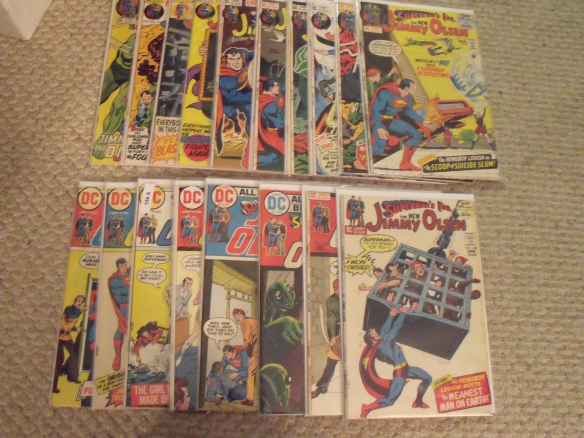 Superman's Pal Jimmy Olsen #136-139, 141-144, 146-149, 151-153, 154 (x2), 155, 157. 19 issues total, bronze age. Average condition ranges from FN+ to VF+, issue #147 has more damage and is G to VG