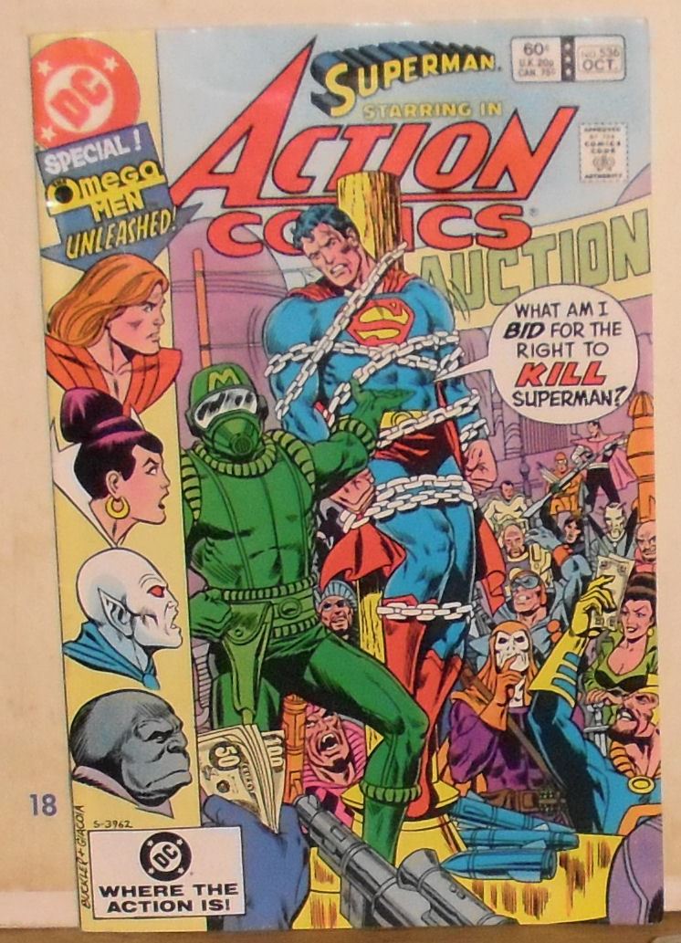 Then 60 cents... is this very old vol. 45 #536 1982 with many pages at least DC Comics with special "Omega Men Unleashed" of the super hero SUPERMAN on the 'auction block', as is in wonderful colours near mint or mint (you might consider as we do for this condition) as seems not read yet comic book, great for your collection or start one now !
