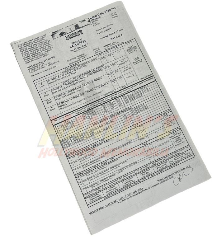 Supernatural (2005 - 2020) - Call Sheet Episode ...