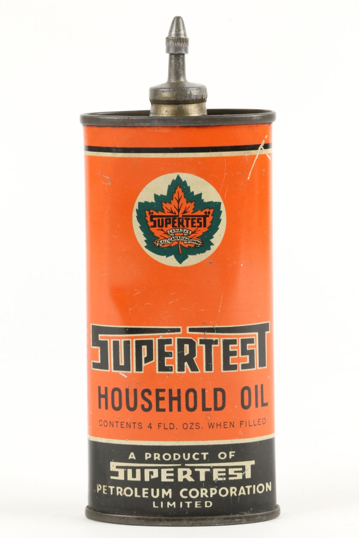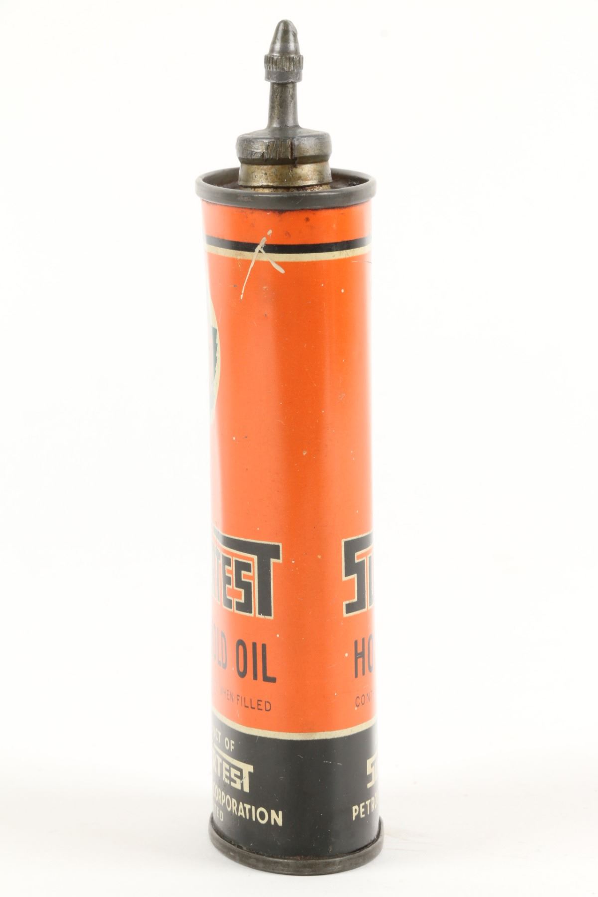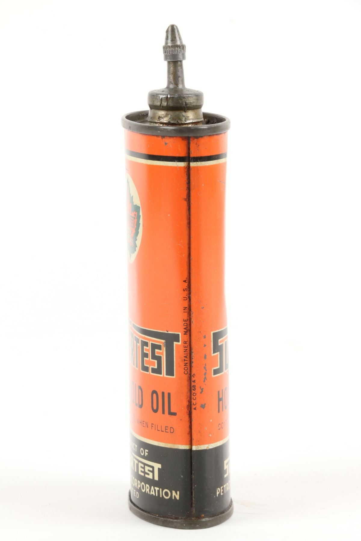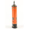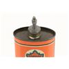 Canadian. Circa 1930. Rare. Lithographed tin. 5.5" x 2.25" x 1.25". Shallow impressions, mostly isolated to one side. Minor scratch (upper quarter) and scuffs. Retains correct cap. $400-500.