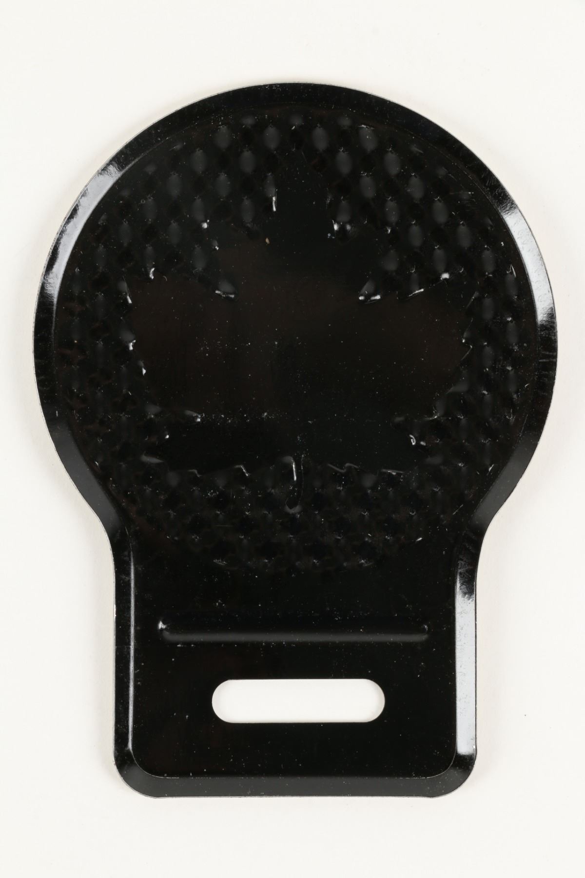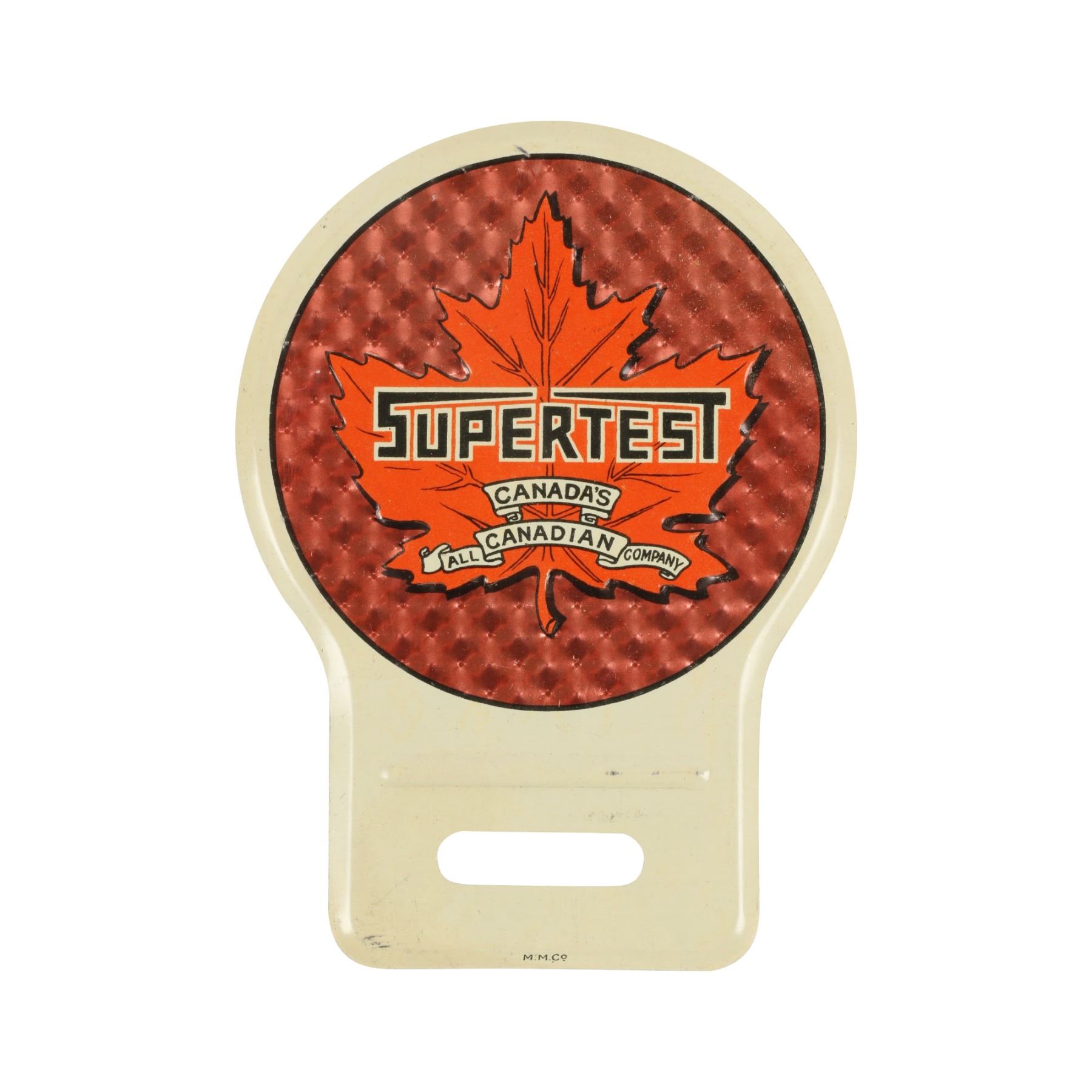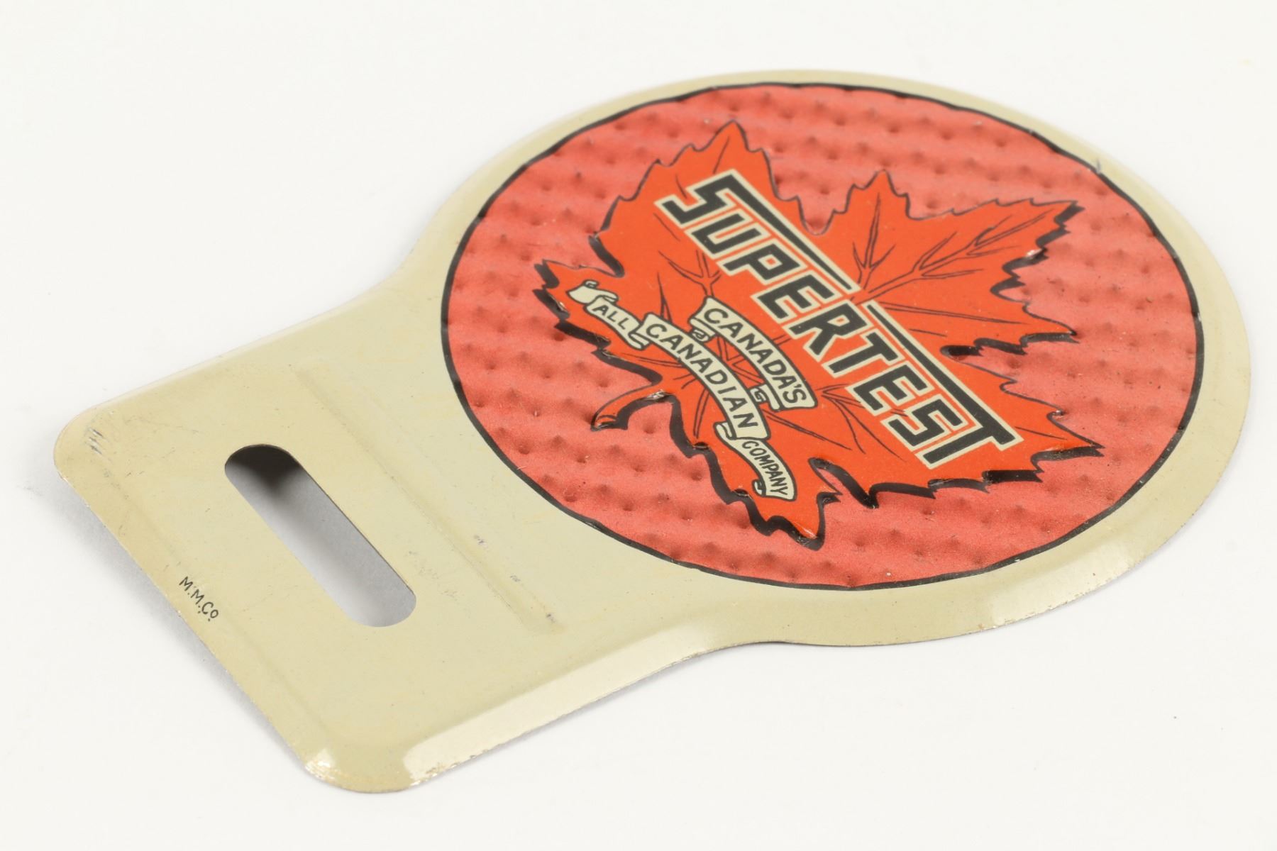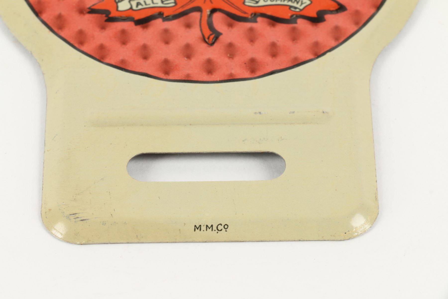 Canadian. Circa 1940. Made by Macdonald Manufacturing Co., Toronto. Embossed, lithographed tin with reflective background. Marked "M.M.Co", lower edge. 5" x 3.75". New old stock, discovered between wax paper. $200-300.