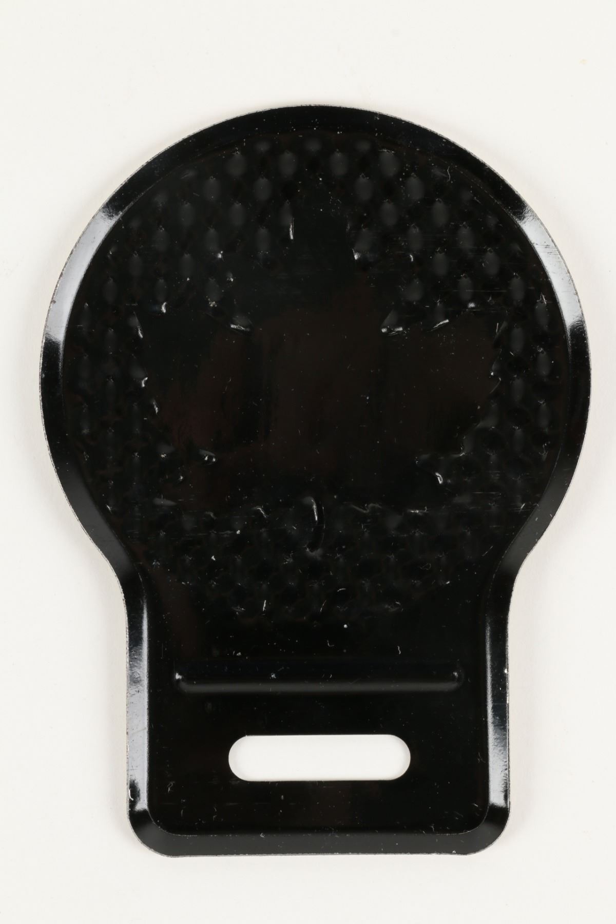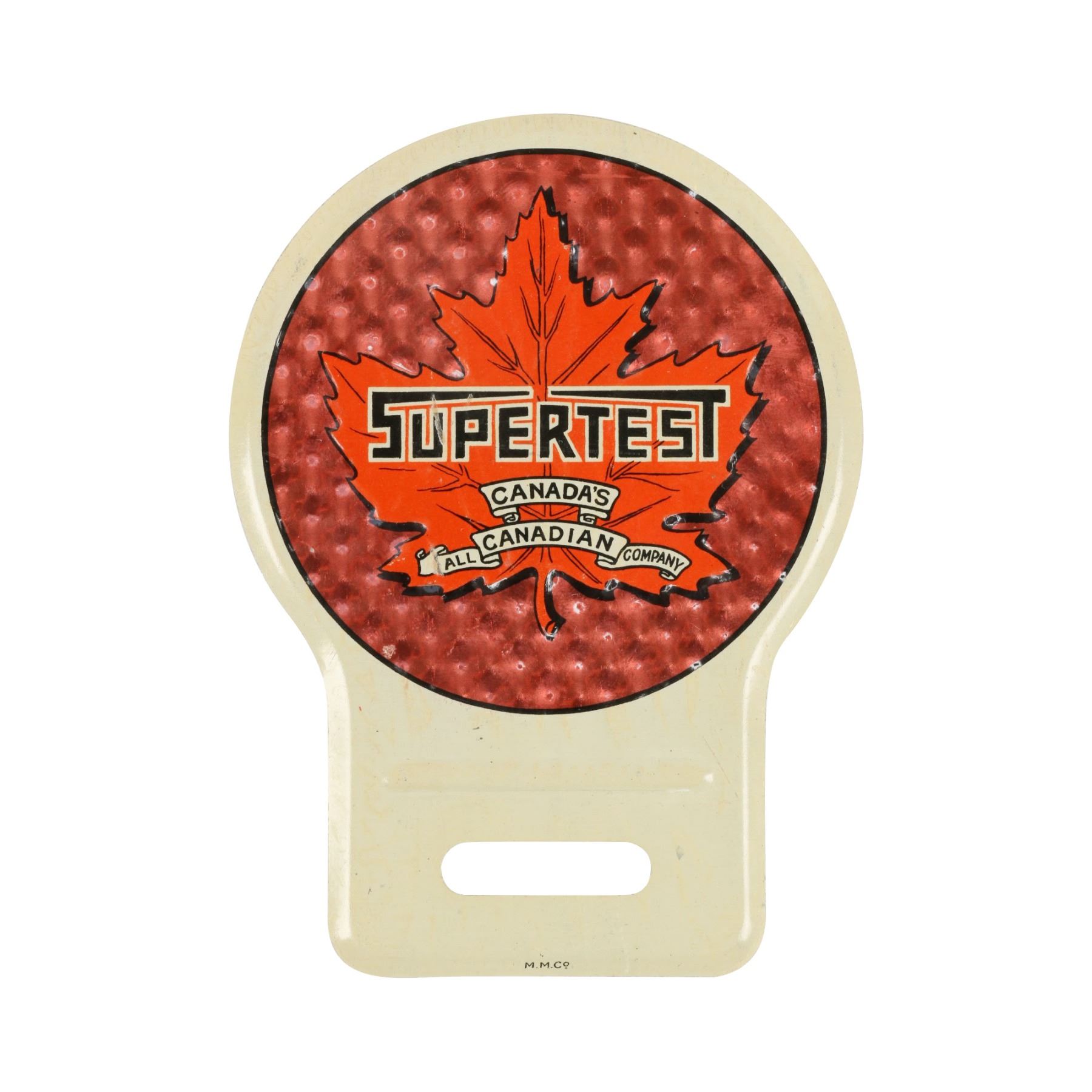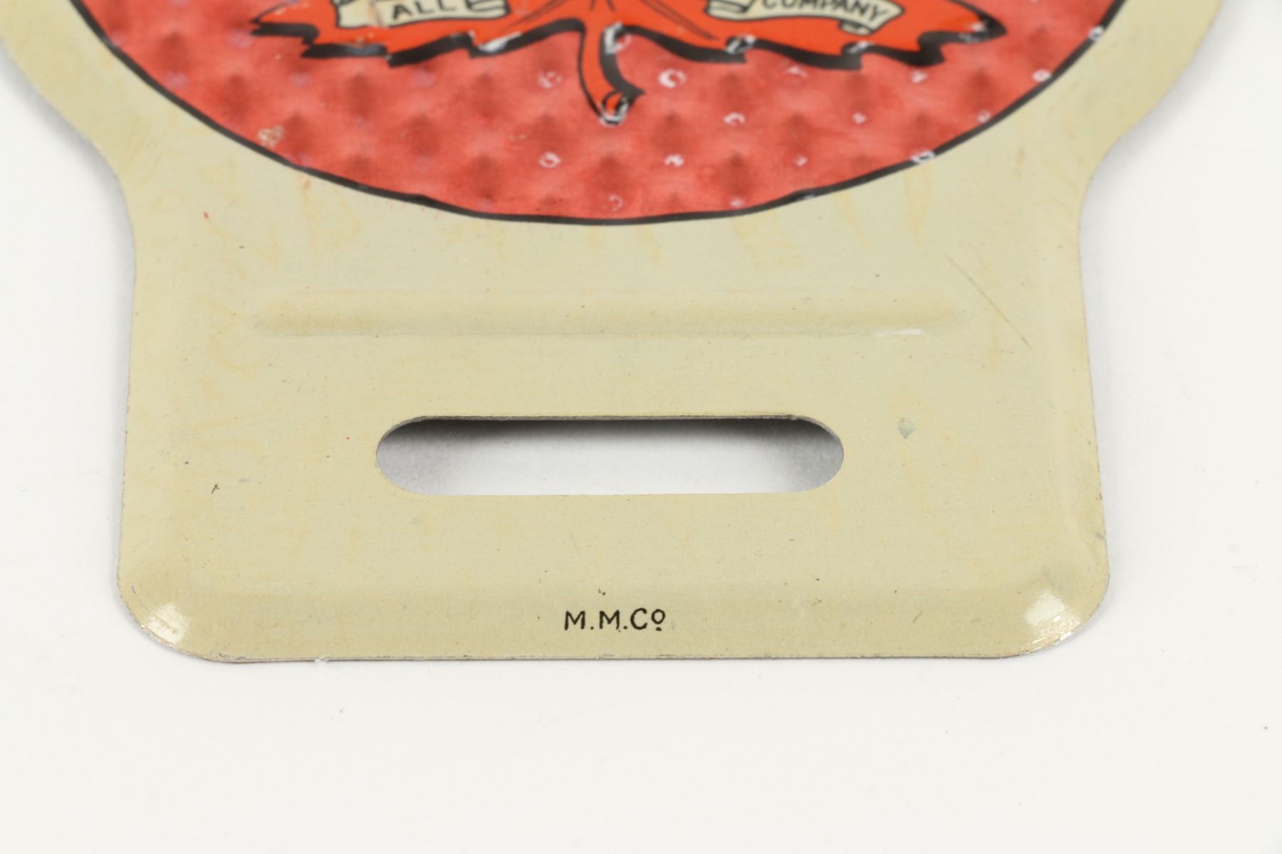 Canadian. Circa 1940. Made by Macdonald Manufacturing Co., Toronto. Embossed, lithographed tin with reflective background. Marked "M.M.Co", lower edge. 5" x 3.75". New old stock, discovered between wax paper. $200-300.