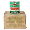 One Imperial gallon "Shurone" can. Includes printed cardboard box, originally containing four cans of the same size and style. 8" x 7" x 7", Box 14" x 14" x 8.5". Opened at top. Minor oxidation. Exceptional colour and gloss. $200-300.