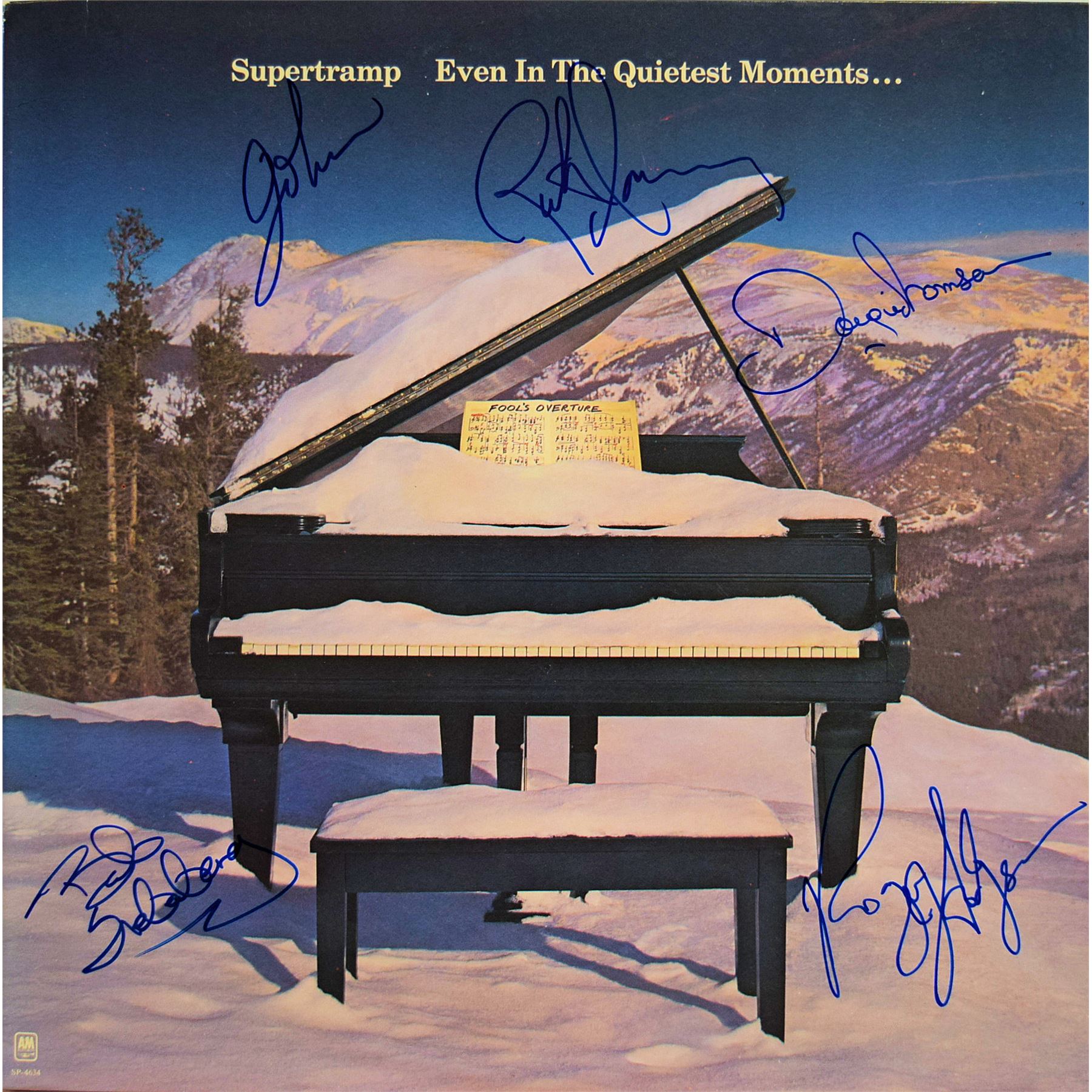 Supertramp 1977 Even In The Quietest Moments album. Signed: Rick Davies, Roger Hodgson, John Helliwell, Dougie Thomson, and Bob Siebenberg.