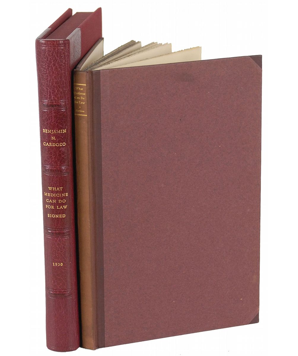 Signed book: What Medicine Can Do for Law. First edition. NY: Harper and Brothers, 1930. Hardcover, 5.75 x 9, 52 pages. Signed on the first free end page in black ink. Autographic condition: fine. Book condition: VG+/None, in VG+ custom-made burgundy quarter leather clamshell box.