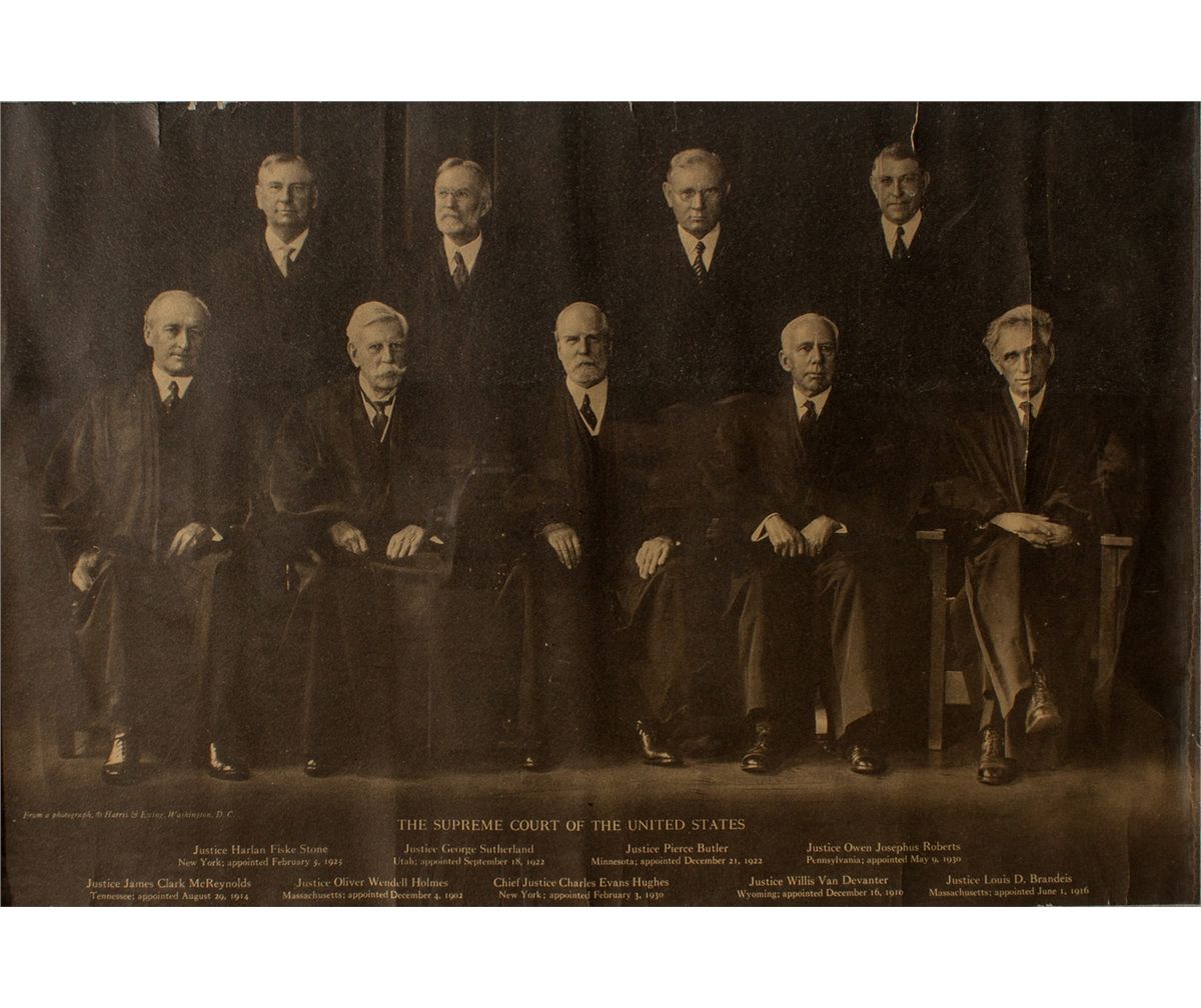 1920 One 12 x 18” black and white photo of all the United States Supreme Court justices, including Louis Brandeis, the first Jewish justice. Included are photocopied biographies. - HKA#65675