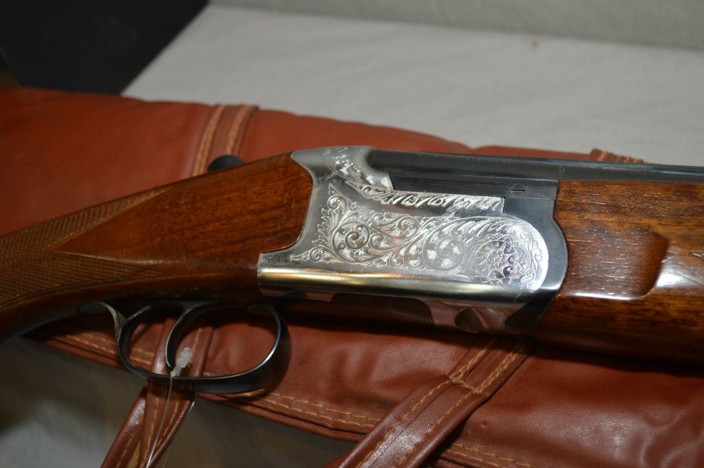 Supreme IBARGUN Model 844 .12 Ga 3" Over & Under Shotgun w/ 29 1/2" vent rib bbls [ appears v-good, blued finish, engraved coin finished receiver & upper tang, single trigger, ejectors, checkered pistol grip stock & forend w/recoil pad c/w soft case ] Ser # 128978