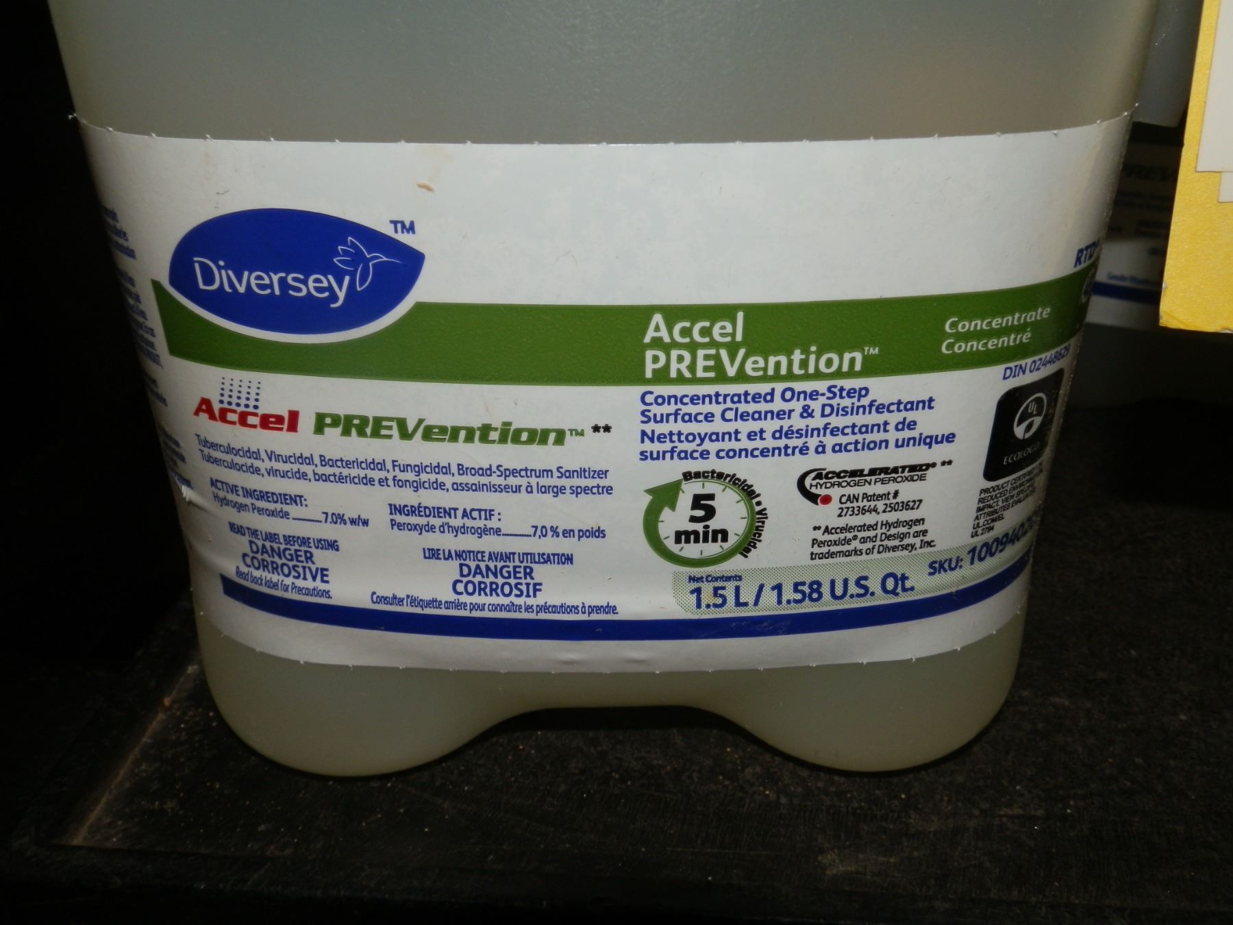 Diversey Accel Prevention Surface Cleaner and disinfectant, you get four 1.5 liter bottles for one money...New