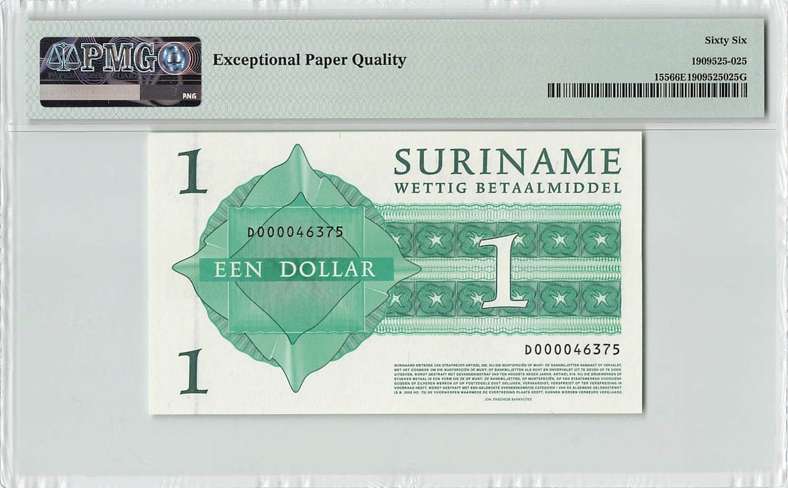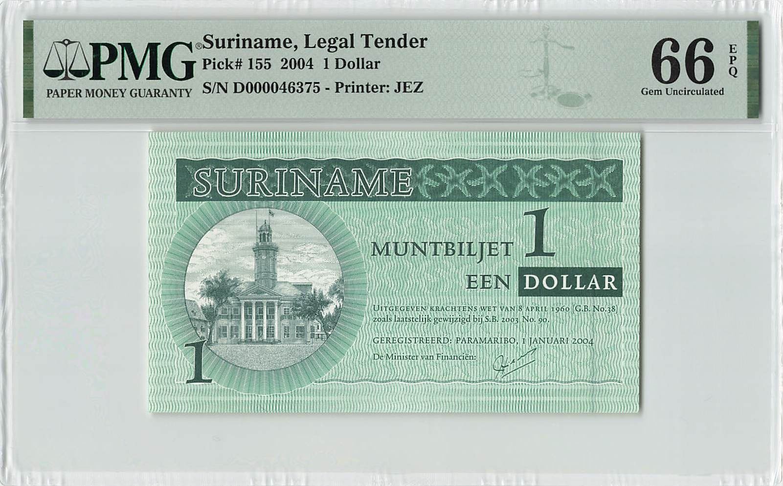 Suriname 1 Dollar 2004 JEZ Pick 155 PMG Gem Uncirculated 66 EPQ
