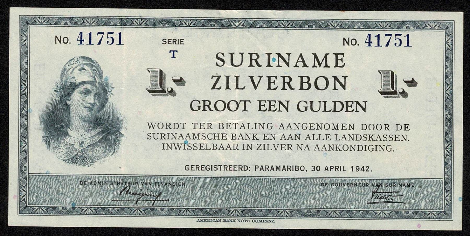Suriname 1 Gulden 1942 ABNC 30.04.1942 Pick 105c