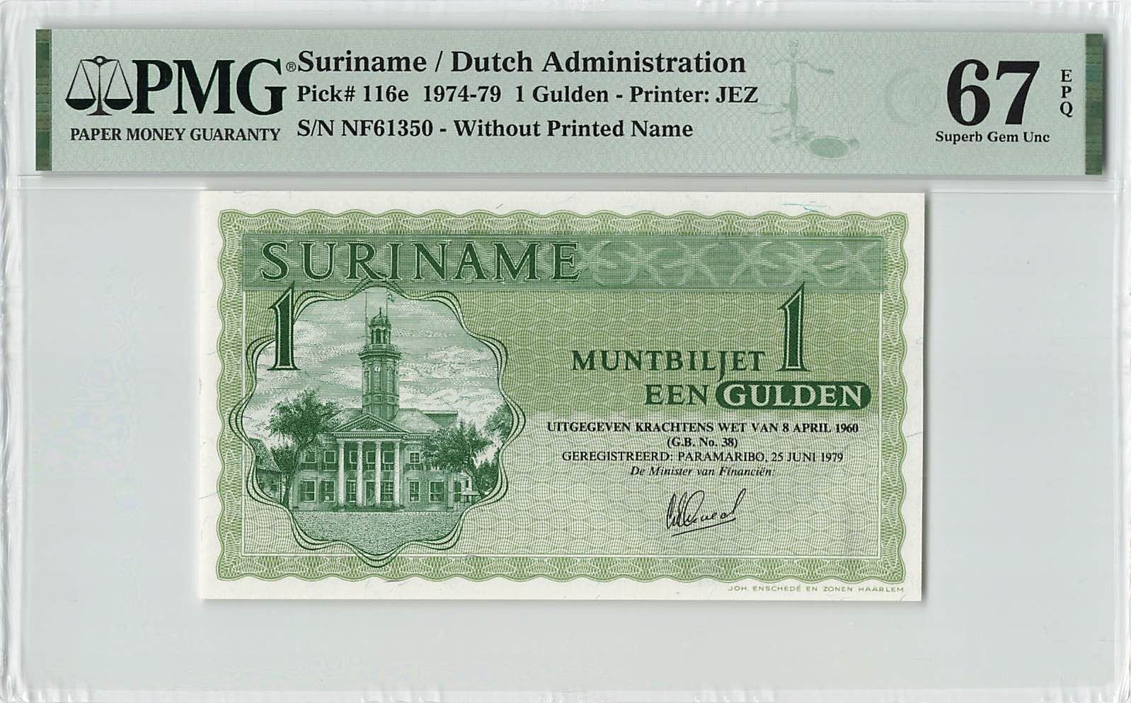 Suriname 1 Gulden 1979 State Note Pick 116e PMG Superb Gem UNC 67 EPQ