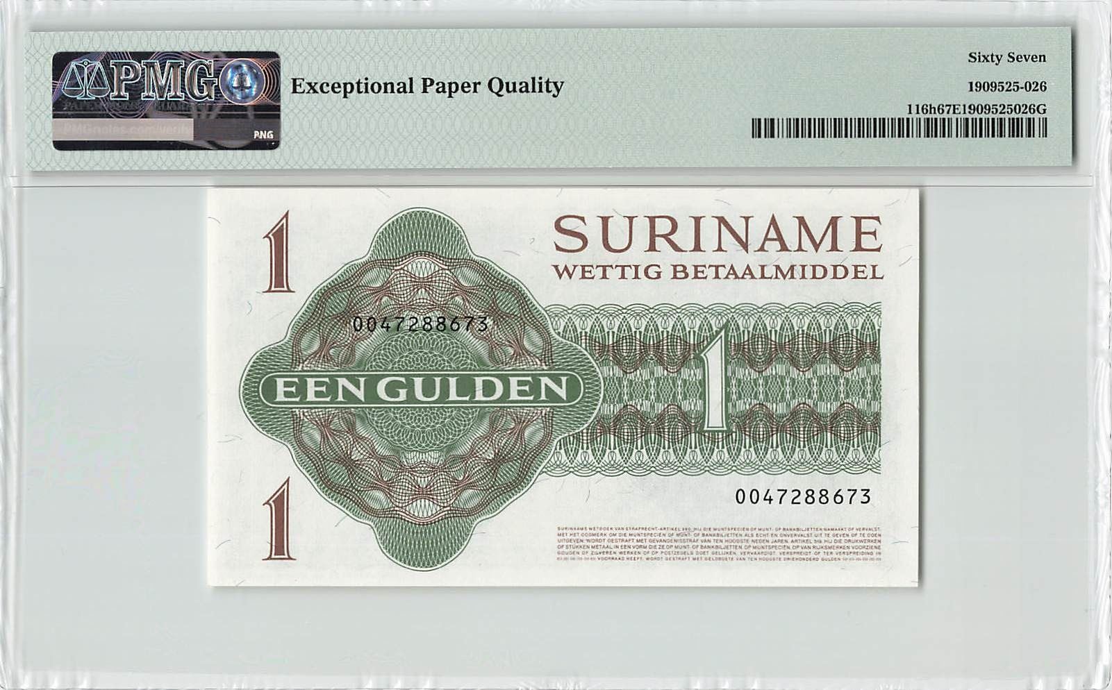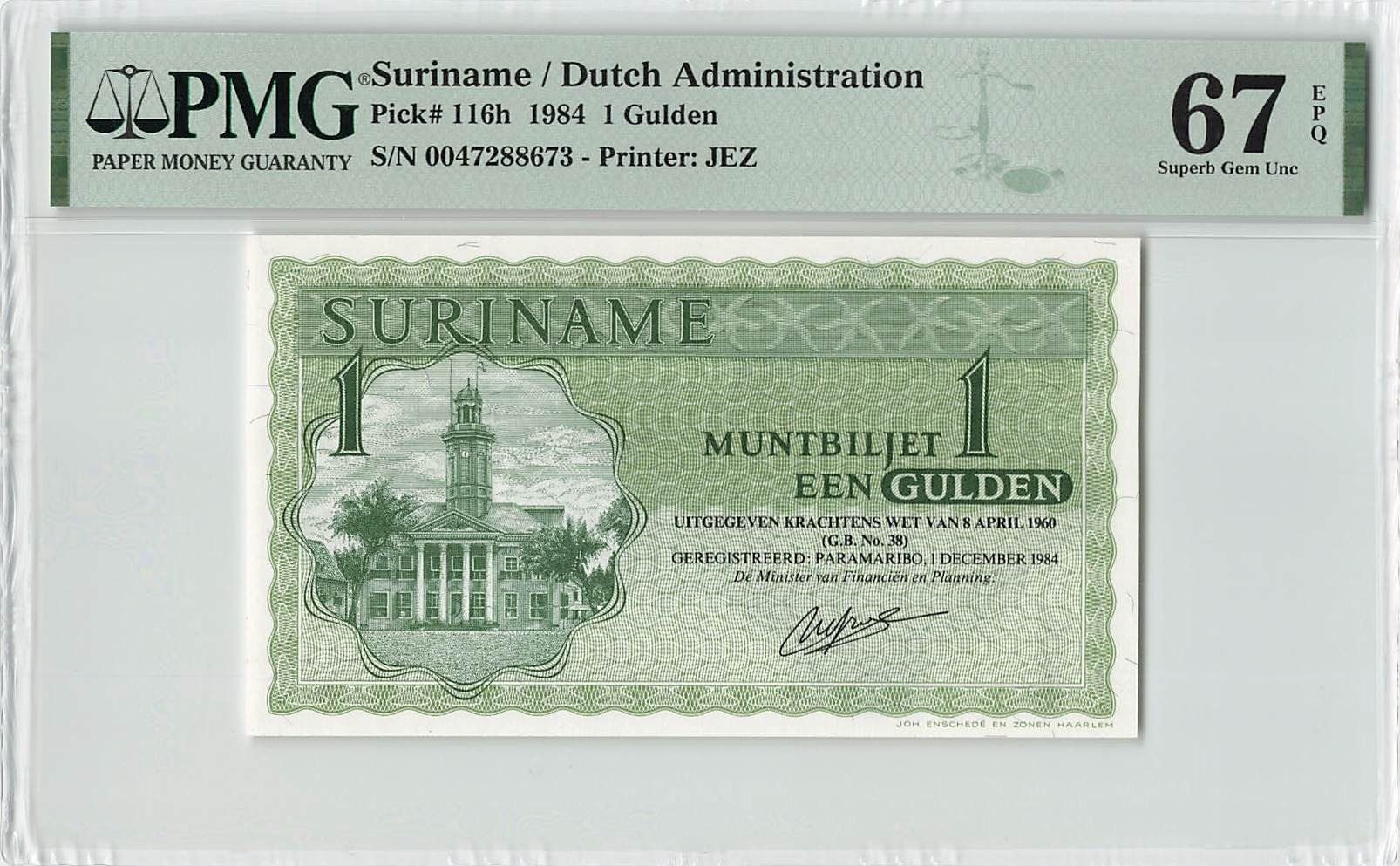 Suriname 1 Gulden 1984 State Note Pick 116h PMG Superb Gem UNC 67 EPQ