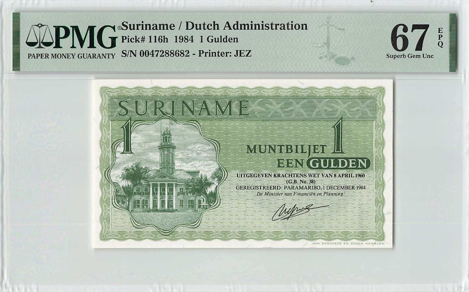 Suriname 1 Gulden 1984 State Note Pick 116h PMG Superb Gem UNC 67 EPQ