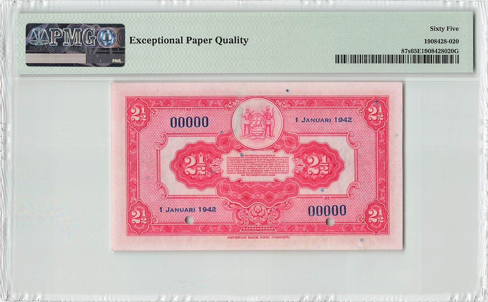 Suriname 2½ Gulden 1942 Specimen ABNC Pick 87s PMG Gem UNC 65 EPQ