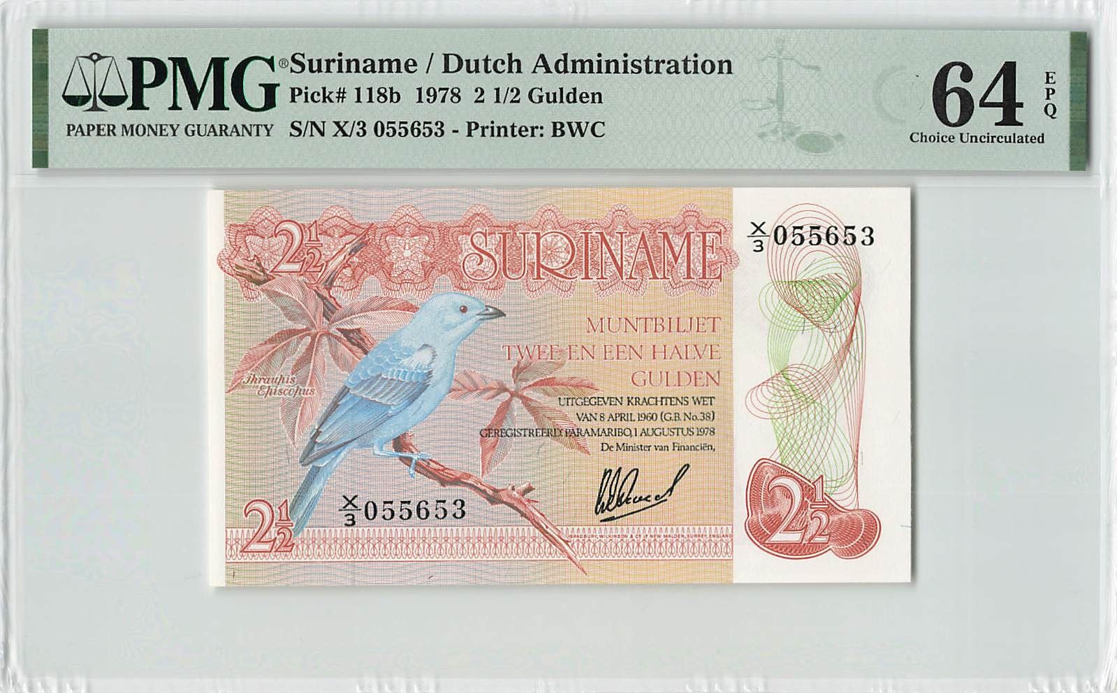 Suriname 2½ Gulden 1978 Pick 118b PMG Choice Uncirculated 64 EPQ