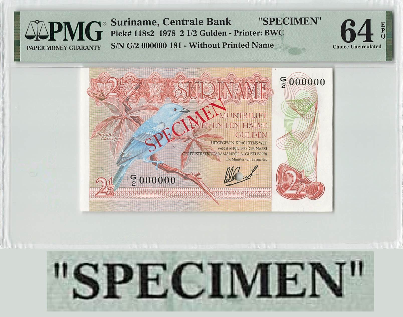Suriname 2½ Gulden 1978 Specimen Pick 118s2 PMG Choice Uncirculated 64 EPQ