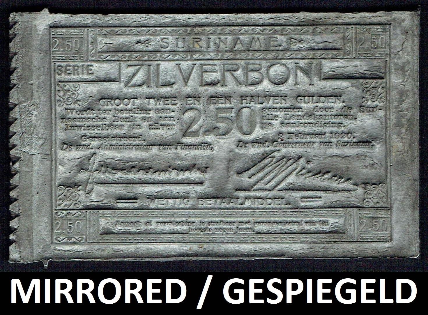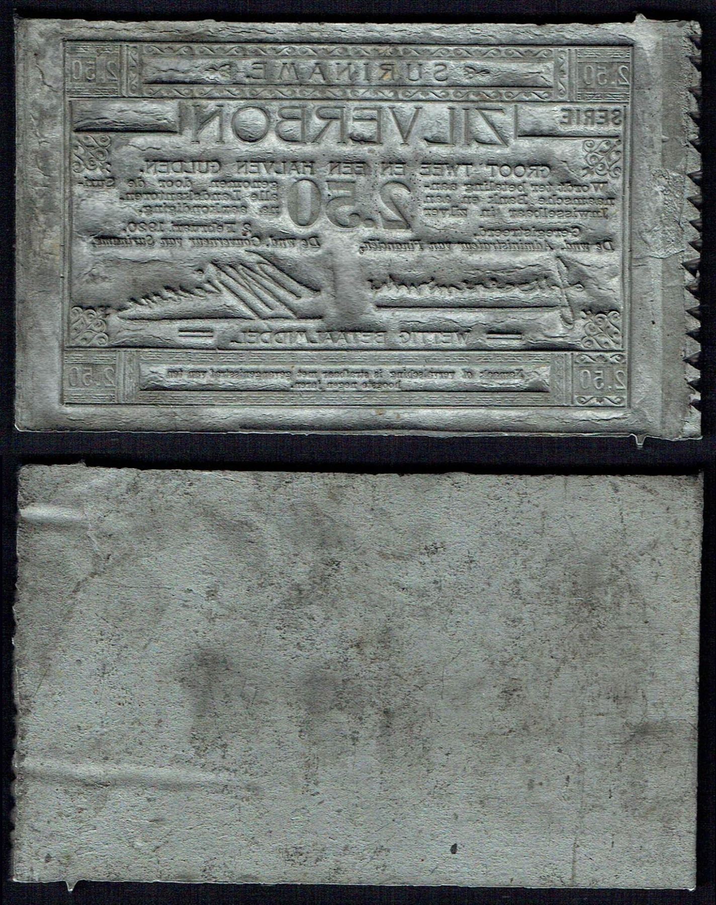 Suriname 2½ gulden 1920 02.02.1920 Zilverbon / Silver Note - Prototype / Printing / Design Plate Pick 100. Same size as the banknote and weighs about 370 grams. Museum piece!