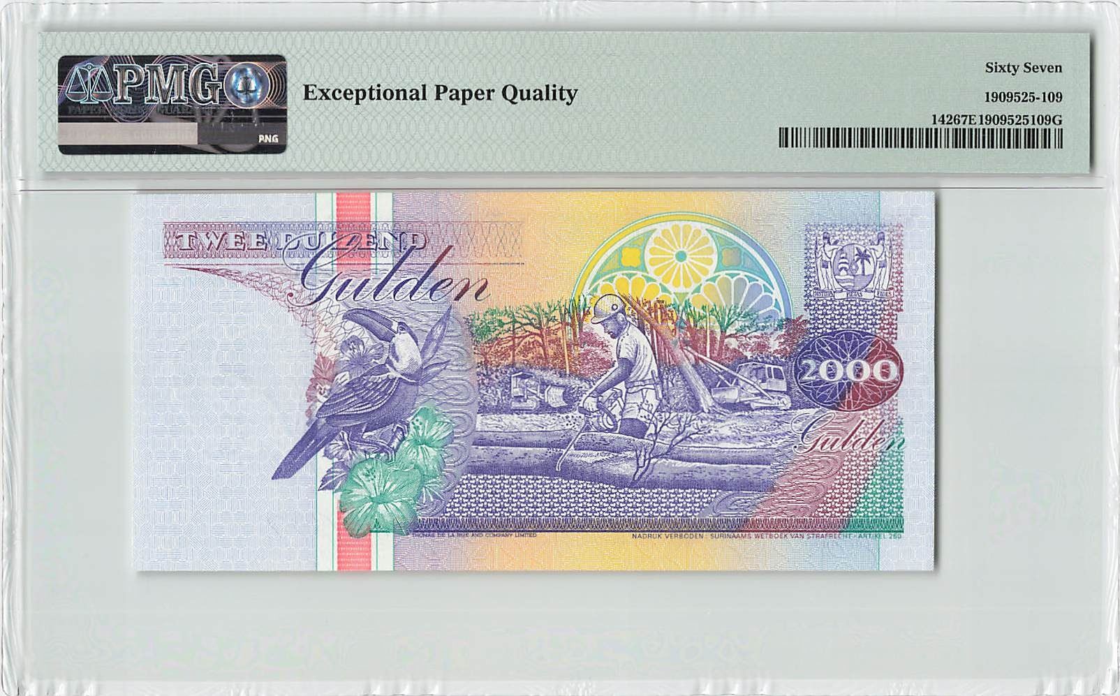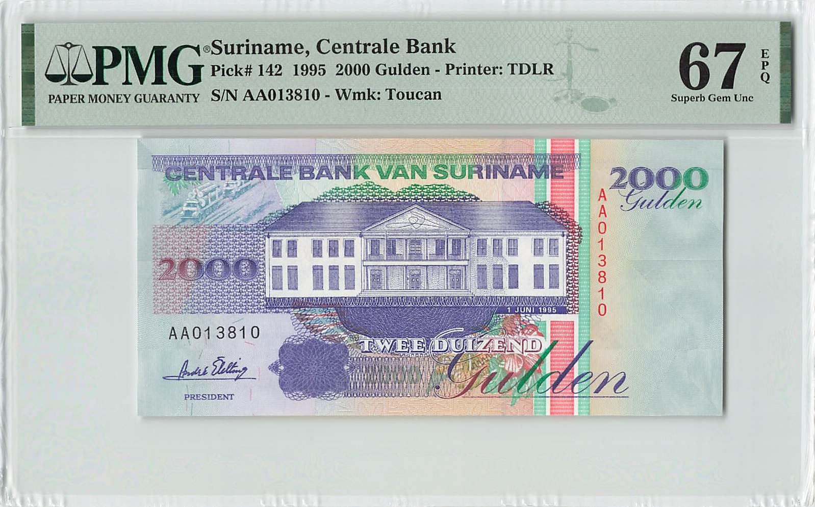 Suriname 2000 Gulden 1995 TDLR Pick 142 PMG Superb Gem Uncirculated 67 EPQ