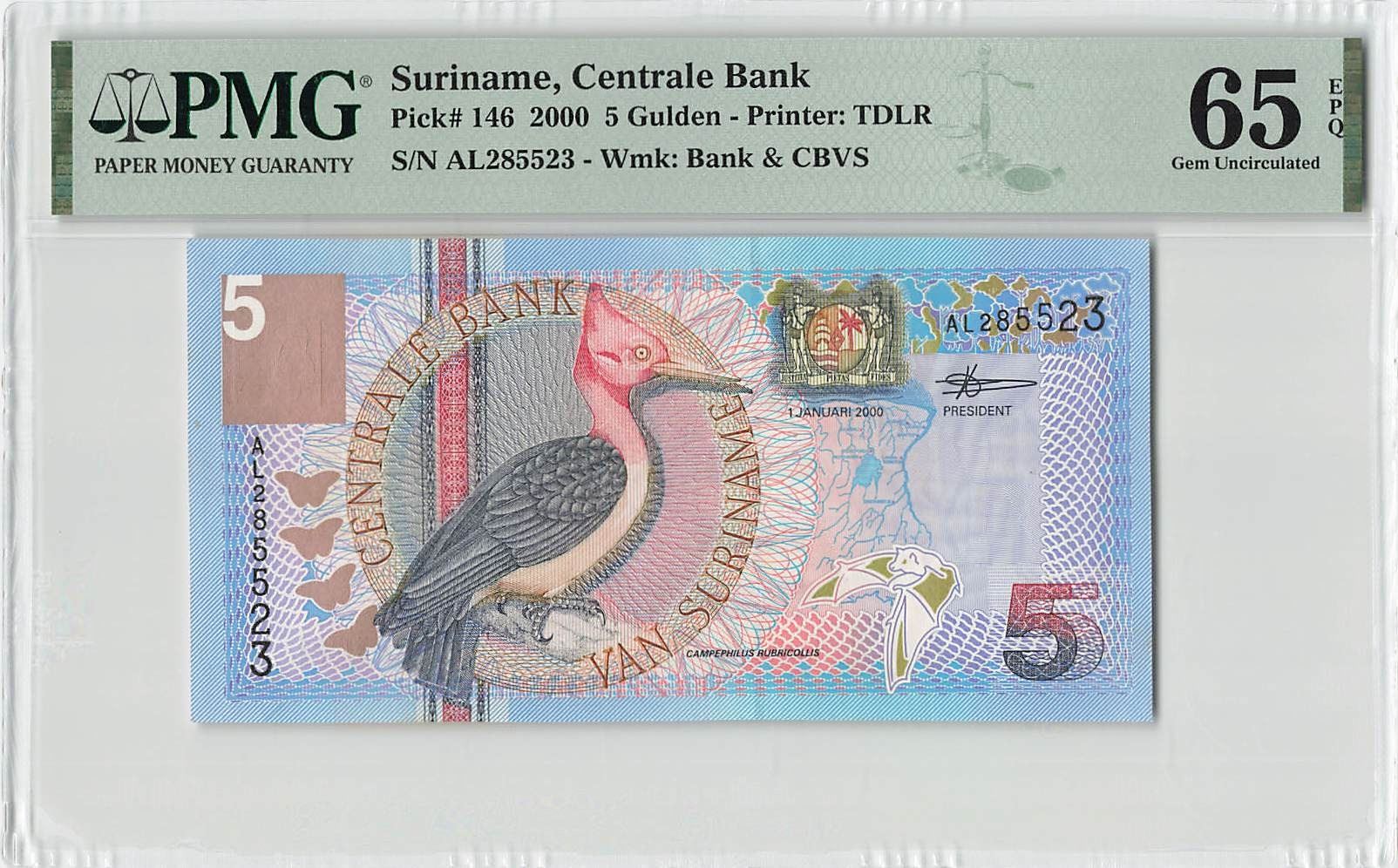 Suriname 5 Gulden 2000 TDLR Pick 146 PMG Gem Uncirculated 65 EPQ