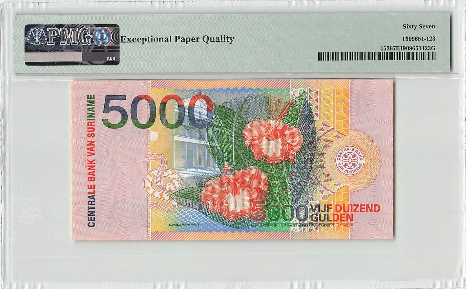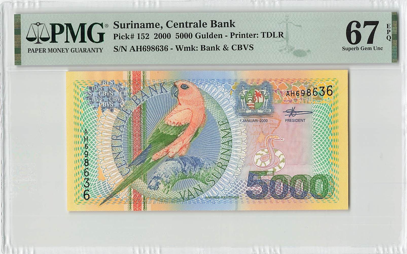 Suriname 5000 Gulden 2000 TDLR Pick 152 PMG Superb Gem Uncirculated 67 EPQ