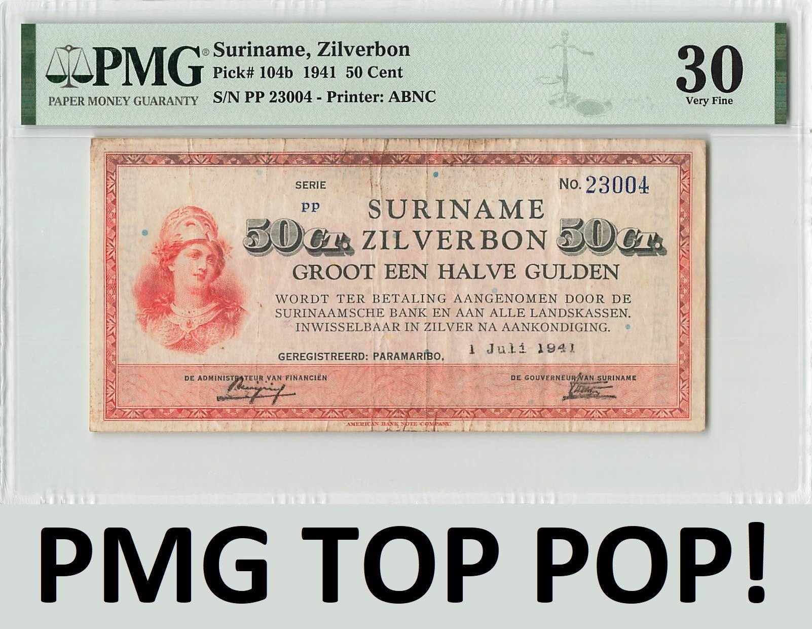 Suriname ½ Gulden 1941 ABNC 01.07.1941 Pick 104b PMG Very Fine 30 TOP POP