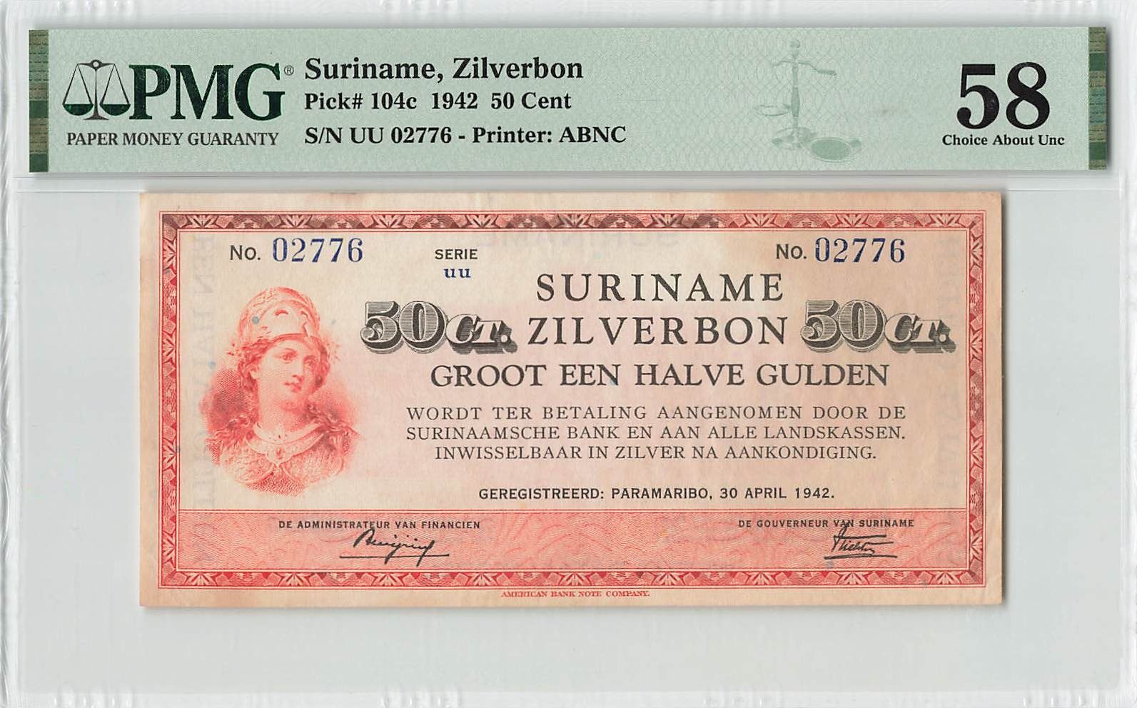 Suriname ½ Gulden 1942 ABNC 30.04.1942 Pick 104c PMG Choice About UNC 58