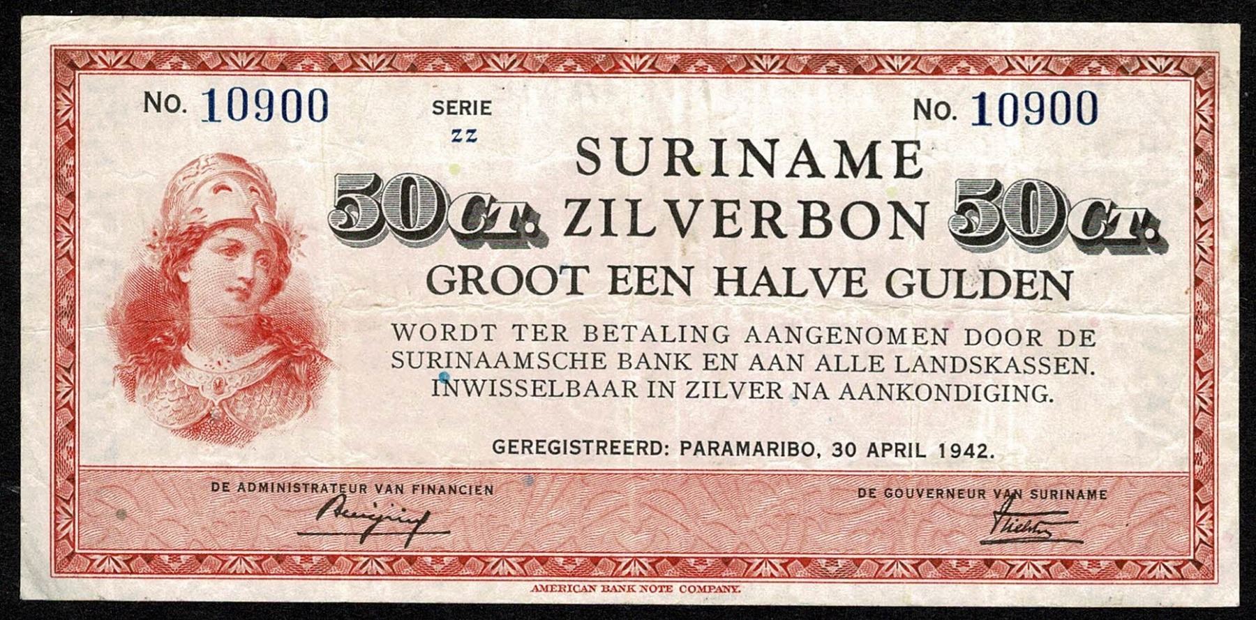 Suriname ½ Gulden 1942 ABNC 30.04.1942 Pick 104c