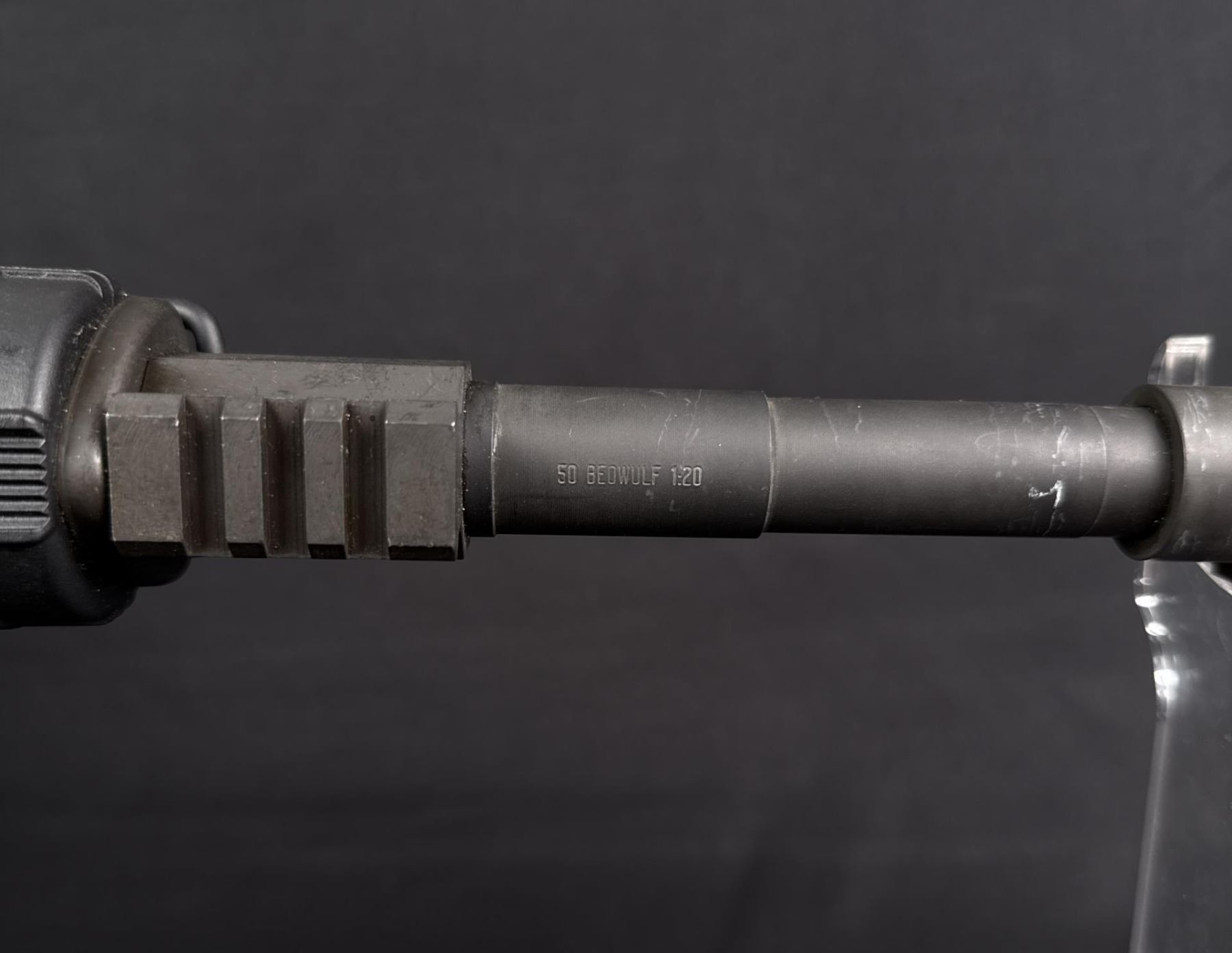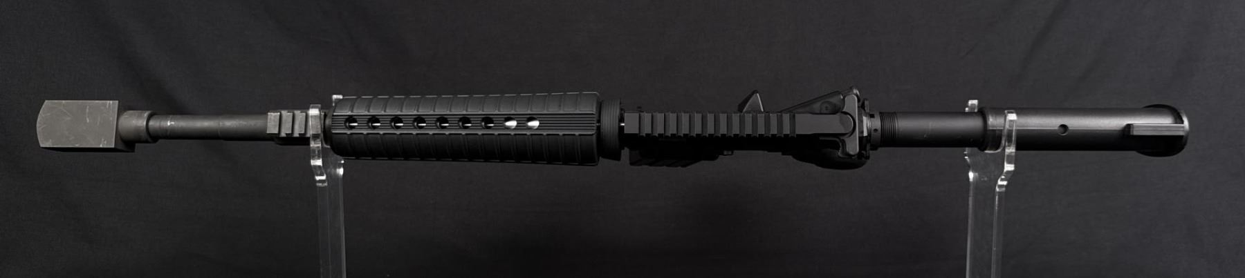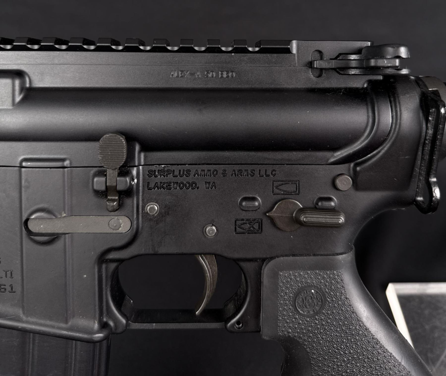 Alexander Arms barreled upper receiver w/ threaded barrel, terminated w/ 4 chamber muzzle brake. Low profile gas block. Mid-length round handguards. Flat top upper receiver. Round forward assist & brass deflector. Surplus Ammo & Arms Model LOW 16 lower receiver. 4 position collapsible black plastic shoulder stock. Black rubber Hogue pistol grip. Sling swivels, front & rear. 18" barrel. Requires FFL Transfer, C&R not accepted. No sales to the following areas, a bid from any of these restricted areas will result in immediate termination of your agility to place bids with our auction company in perpetuity: California, Colorado, Connecticut, Delaware, Washington DC, Illinois, Hawaii, Maryland, Massachusetts, Washington State, New Jersey, Vermont, and New York.