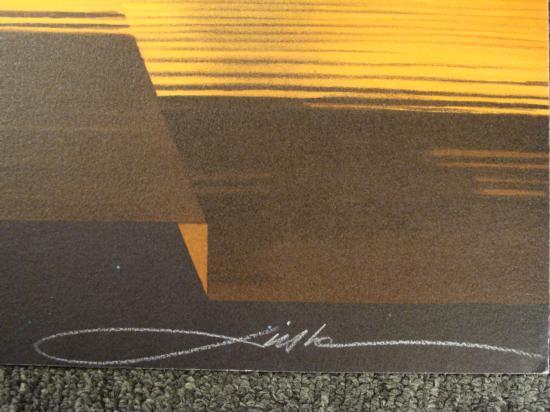 This surreal landscape combining "the mathematical intrigue of Escher, the haunting surrealism of the early Dali, and the structural mysticism of the mandala," by popular artist Frank Licsko (Hungary, b. 1946): Title: "Staggering" Serigraph on paper 23 × 39 Signed by the artist in pencil LR Numbered from a limited edition of 175 LL Excellent condition; never mounted, matted or framed Certificate of Authenticity issued by Midwest Estate Buyers One online gallery representing Licsko has this to say: "Licsko's work takes one in to an abstract world, a peculiarly and powerfully beguiling world, a world which combines much of the mathematical intrigue of Escher, the haunting surrealism of the early Dali, and the structural mysticism of the mandala." The highly prized and praised work of Frank Licsko has been shown in many exhibitions and solo shows throughout the world. For International shipping please request a SHIPPING QUOTE Shipping and handling for this item is $16.00 plus additional insurance cost. For shipping information please see our artwork shipping table for unframed: 4" x 36" tubes on our aboutme page . See over 2,000 art, antique & collectible items on our eBay Store, by clicking here! Like this item? See similar ebay items by clicking here! CLICK THE IMAGE TO ENLARGE Listed with Midwest Estate Buyer's Auction Management System ™ AMS™