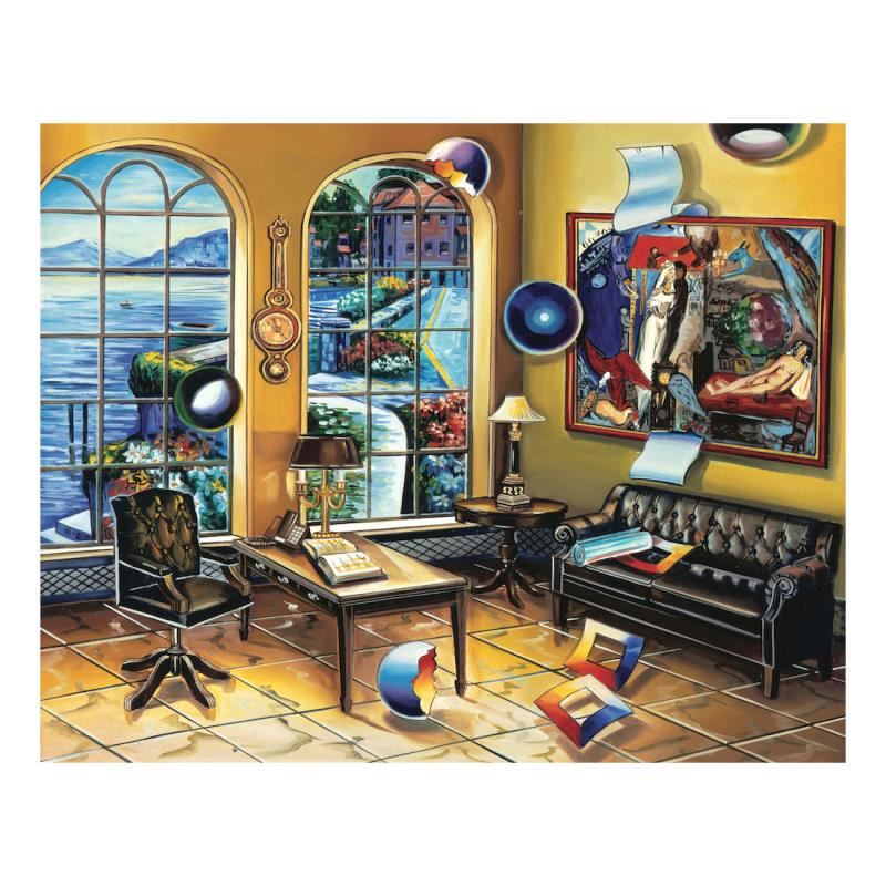 "Surreal Office" is a limited edition giclee on canvas from a sold out edition by Alexander Astahov. The piece is numbered, hand signed by the artist, and includes Certificate of Authenticity. Measures approx. 30" x 20" (image).