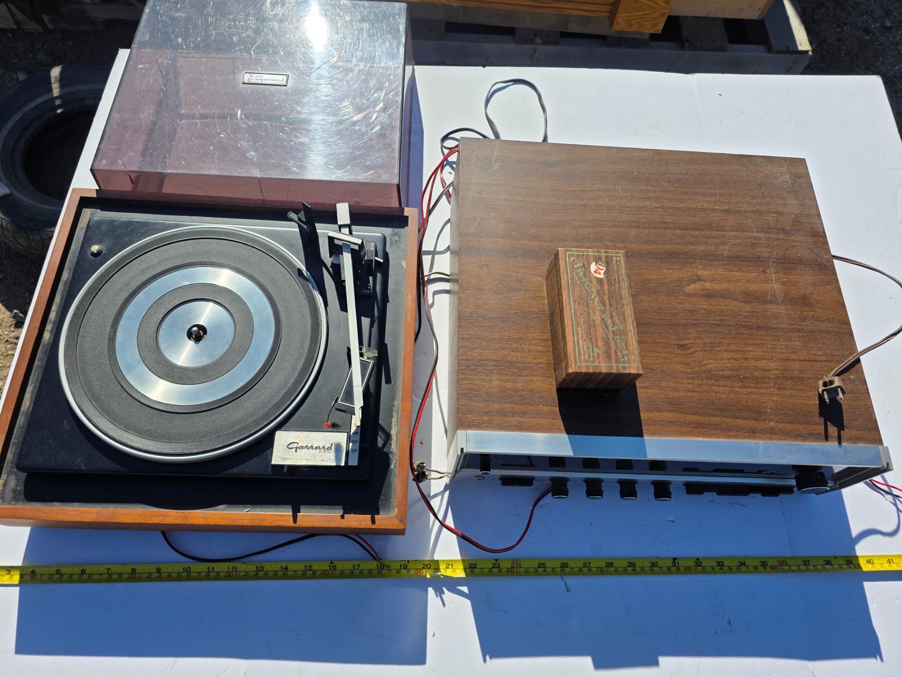 Surround sound system with record player and receiver- untested- missing needle