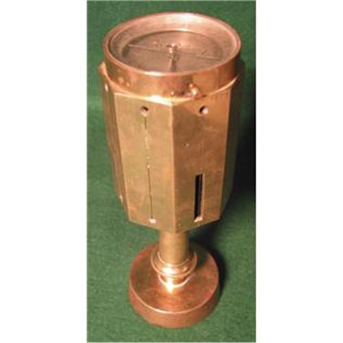 English brass surveyor's 'Cross/Compass' in excellent condition. The steel face compass is in working order with a lock on the pointers for safe transport. 8ins high (mounted) and 3ins diam. The stand has been made from an 'Avery' shopscale one pound weight. c.1870 making a great display item.