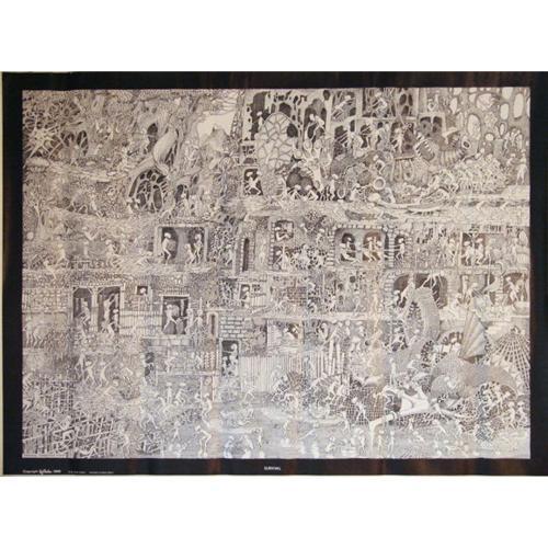MJP1696 ? Survival (storyboard) - 28" x 37-1/2", oversize reproduction by Key Mack from the ?Emotional Hieroglyphic Series,? copyright 1968. Rolled.