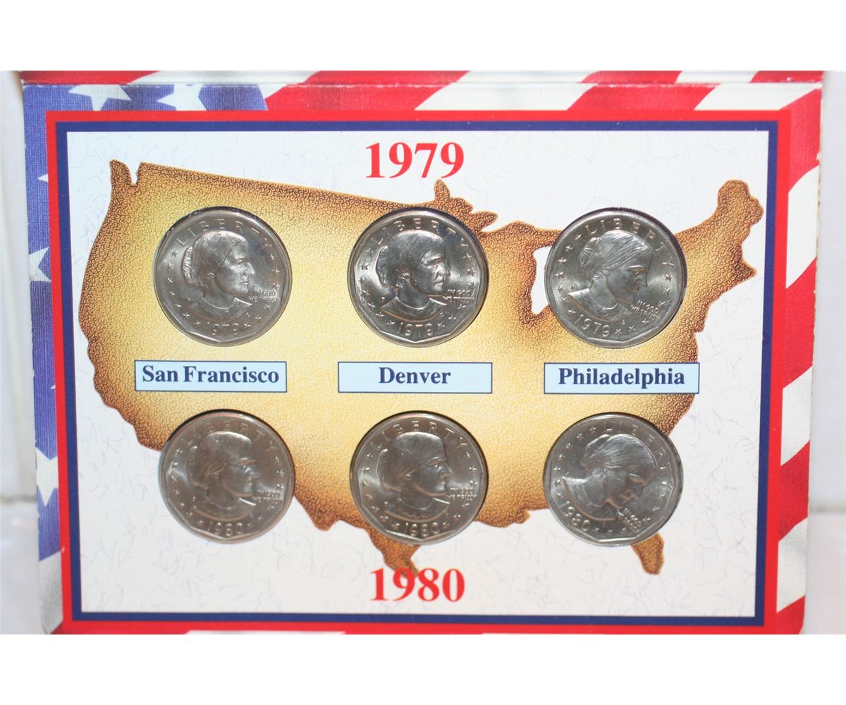 This lot is a complete susan b anthony dollars 2 year set in holder frm littleton coin co.