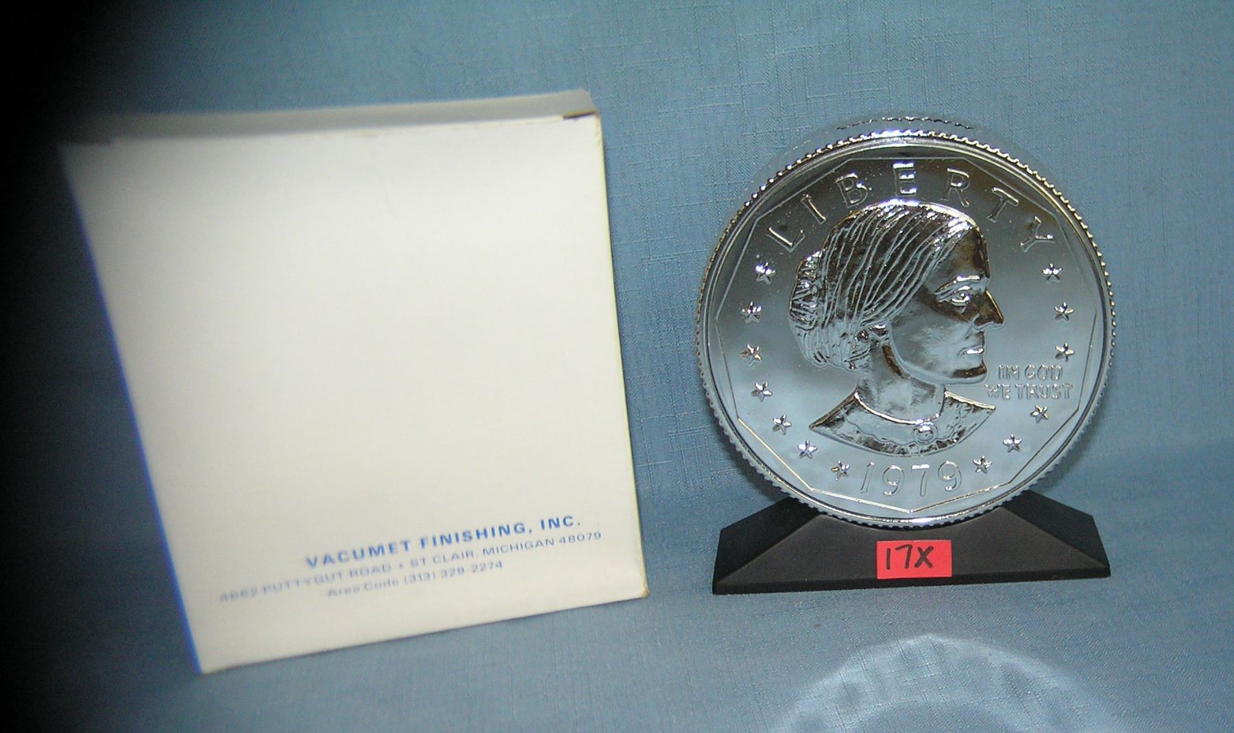 Susan B Anthony double sided all cast metal savings bank with original box est. value $75.00-$80.00