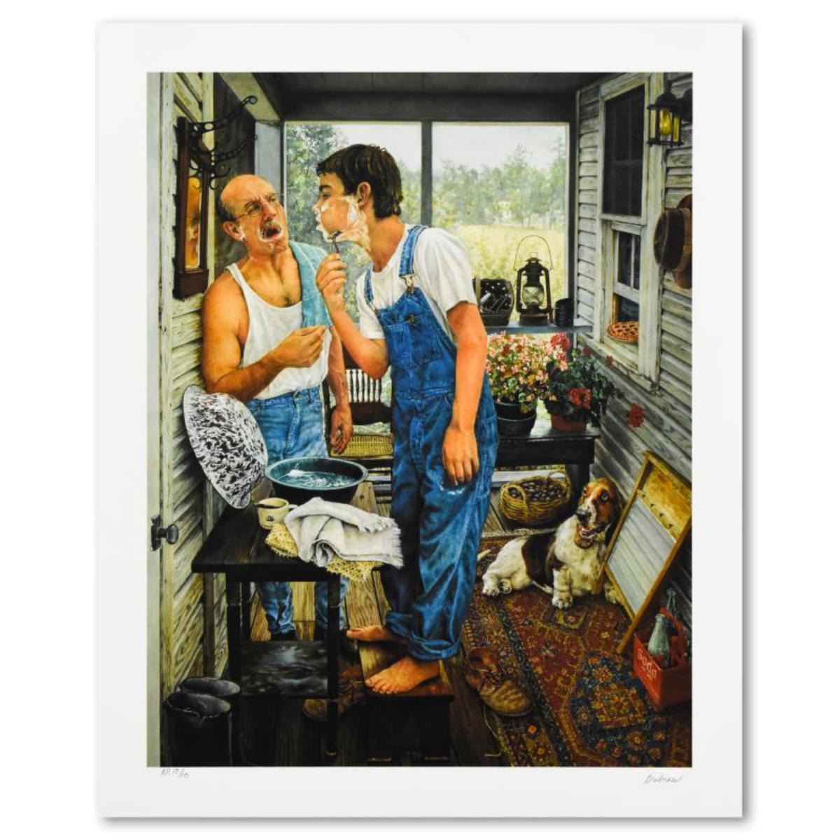 "First Shave" is a limited edition seriolithogrpah on paper by Susan Brabeau, AP numbered 10/10 and hand signed by the artist. Includes Letter of Authenticity. Measures approx. 19" x 23" (border), 16" x 20" (image). Reference #: 238784