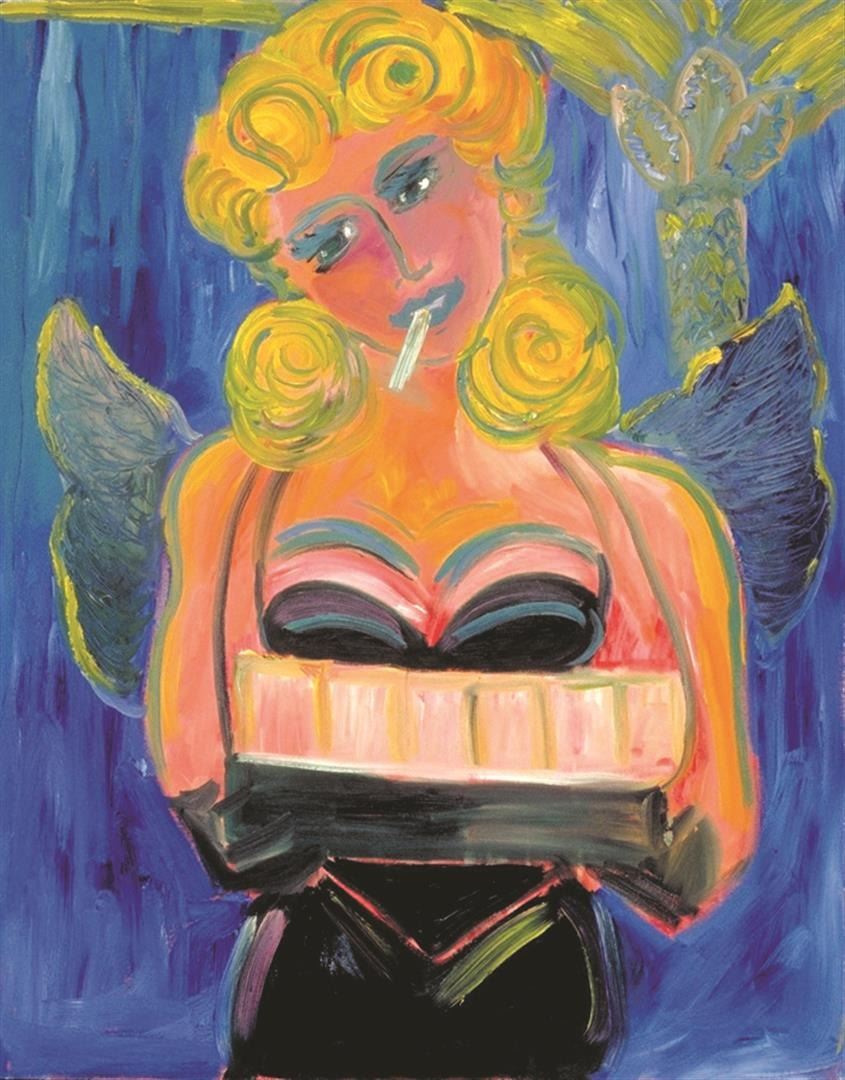 Susan Manders "Cigars, Cigarettes?" is a 24by30 original oil on canvas