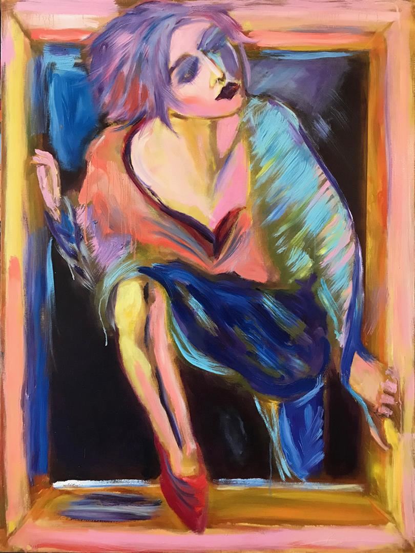 Susan Manders "Coming Out" is a 36by48" original oil on canvas
