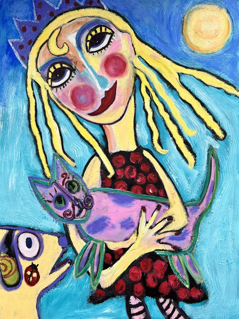Susan Manders "Funky Family Friends" is a 36by48 original oil on canvas