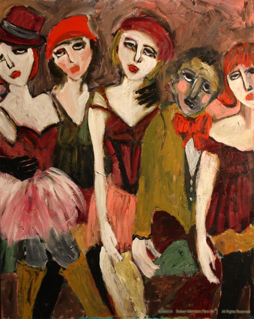 Confusion or competition, depends on your point of view in Susan Manders "Lucky Guy" is a 48 x 60" original oil on canvas. Manders works are represented in fine collections internationally & archived by the National Museum of Women in the Arts ,Washington, DC. As the 2nd woman to be selected a US Olympic Artist, Manders joins an exclusive club of internationally acclaimed artists.