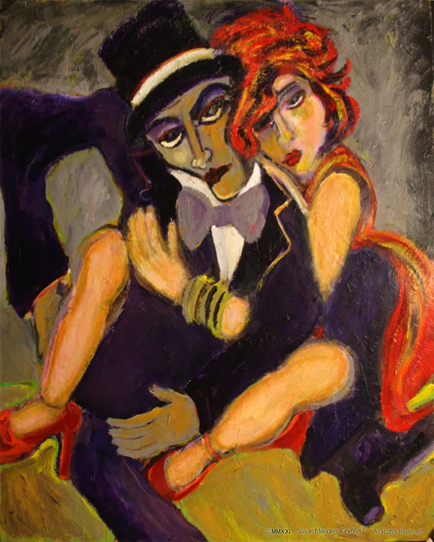 They are inseparable as lovers and performers in Susan Manders "Magician's Assistant", a 48 x 60" original oil on canvas. Manders works are represented in fine collections internationally & archived by the National Museum of Women in the Arts ,Washington, DC. As the 2nd woman to be selected a US Olympic Artist, Manders joins an exclusive club of internationally acclaimed artists.