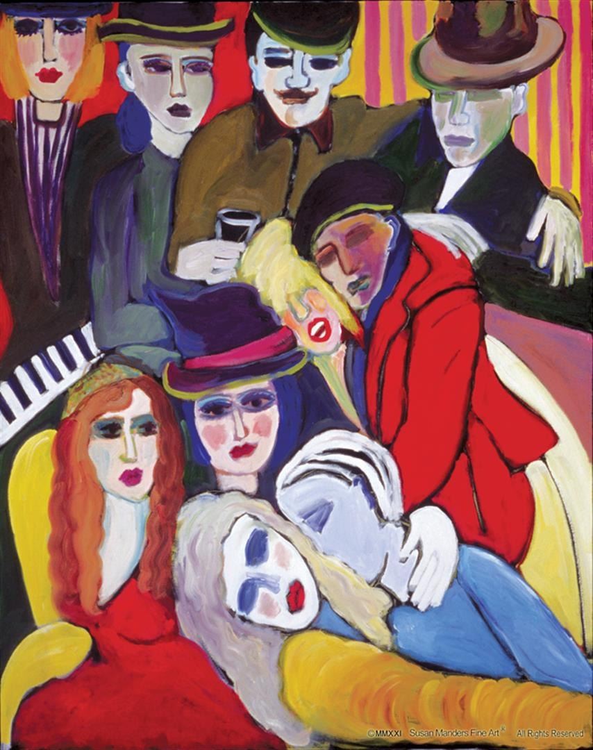 Colors shout out loud in Susan Manders Original "We Are One of A Kind", a 48 x 60" original oil on canvas. Manders works are represented in fine collections internationally & archived by the National Museum of Women in the Arts ,Washington, DC. As the 2nd woman to be selected a US Olympic Artist, Manders joins an exclusive club of internationally acclaimed artists.