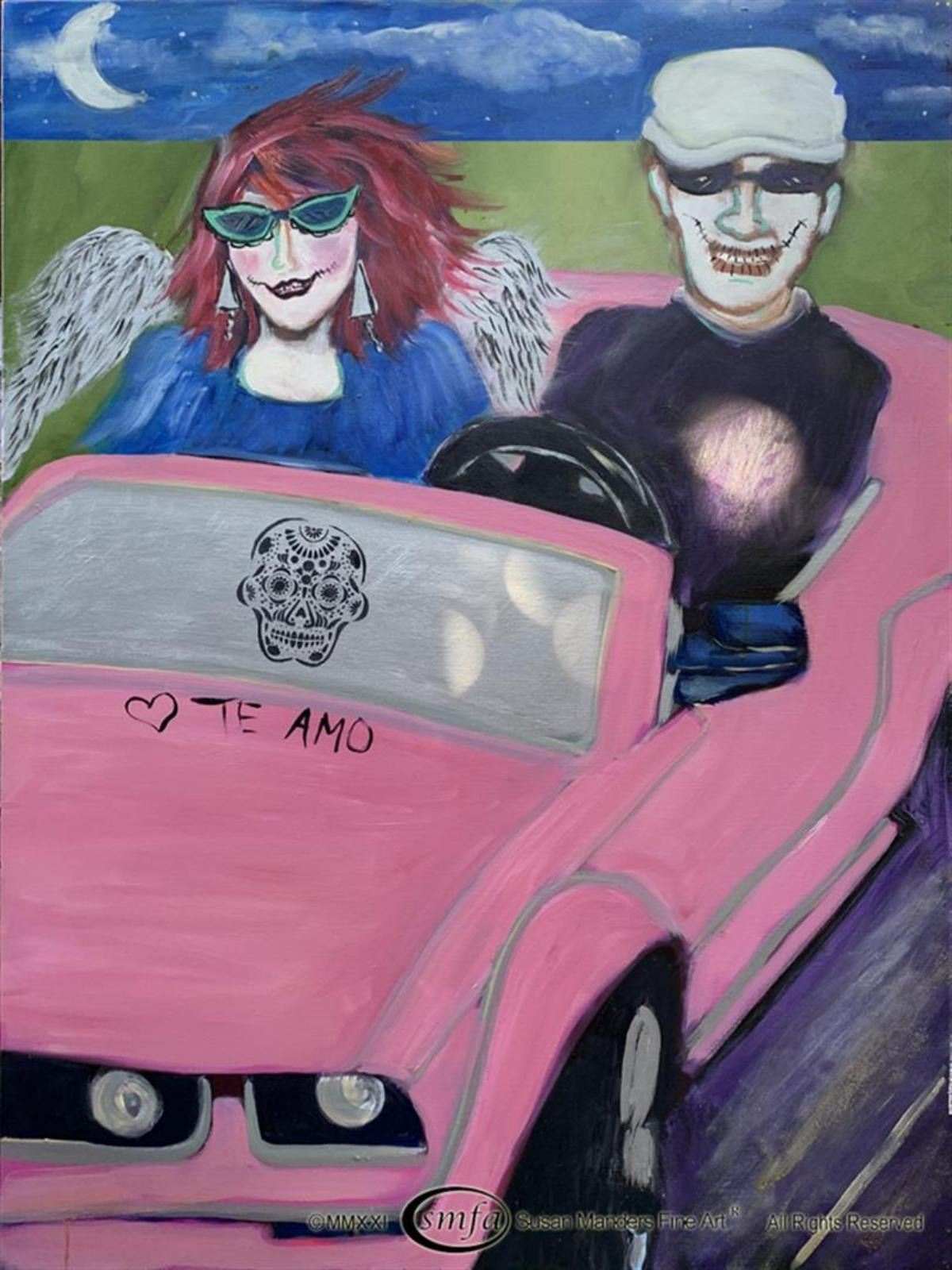 Susan Manders "Pink Cadillac" is a 30x40" original oil on canvas. "That's my ride, and I'm taking it." . Susan Manders was only the 2nd Woman selected as a US Olympic artist in 1984.