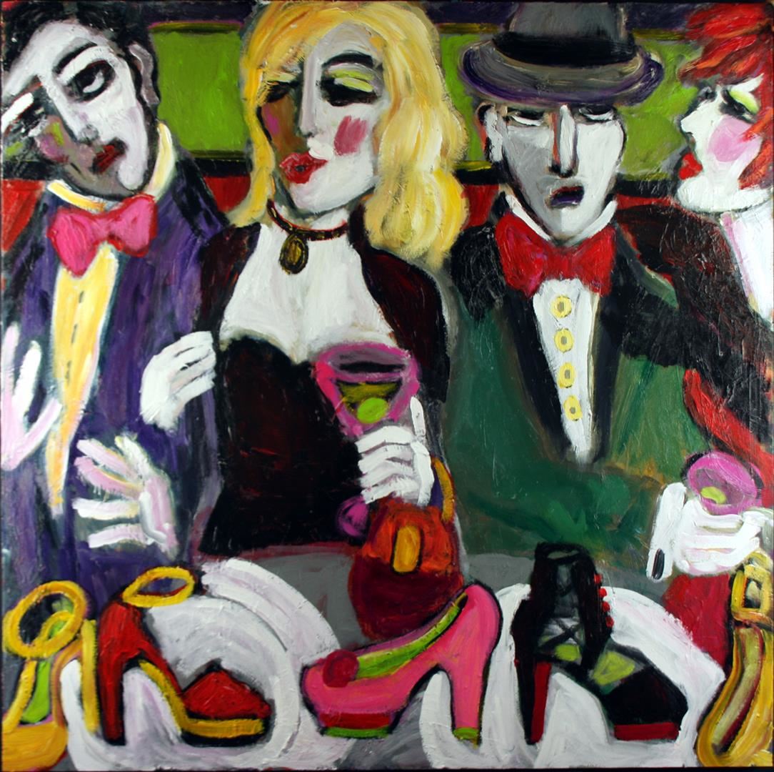 Susan Manders "Shoes & Schmooze" is a 48by48 original on canvas