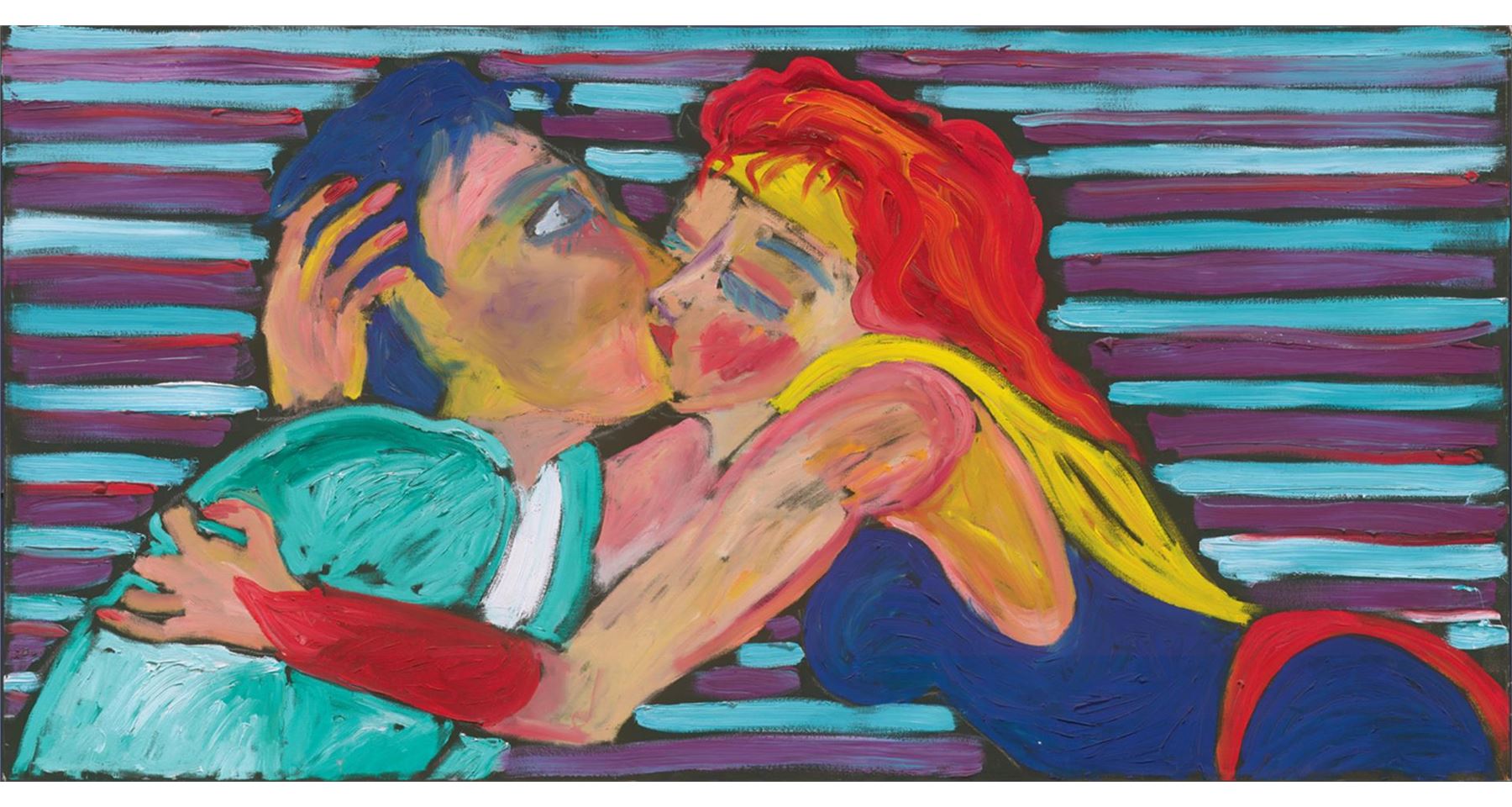 Susan Manders "The Kiss" is a 48by24" original oil on canvas
